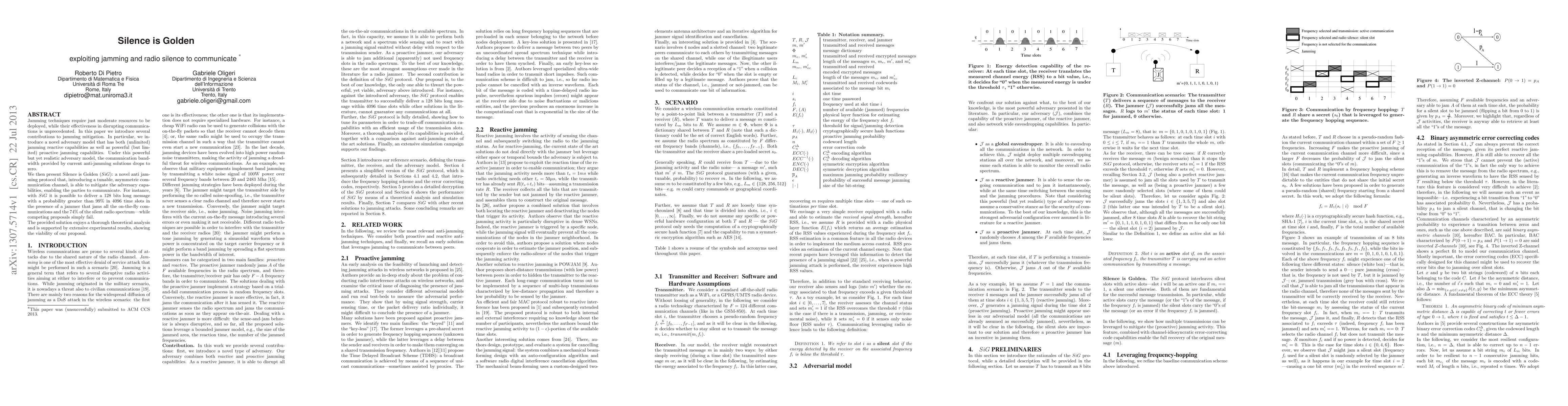 This paper introduces a novel anti-jamming protocol called Silence is Golden (SiG) that leverages jamming mitigation techniques to enable communication despite powerful adversarial jamming. SiG employs a tunable, asymmetric communication channel to overcome jamming, demonstrating high success rates in message delivery under severe jamming conditions.