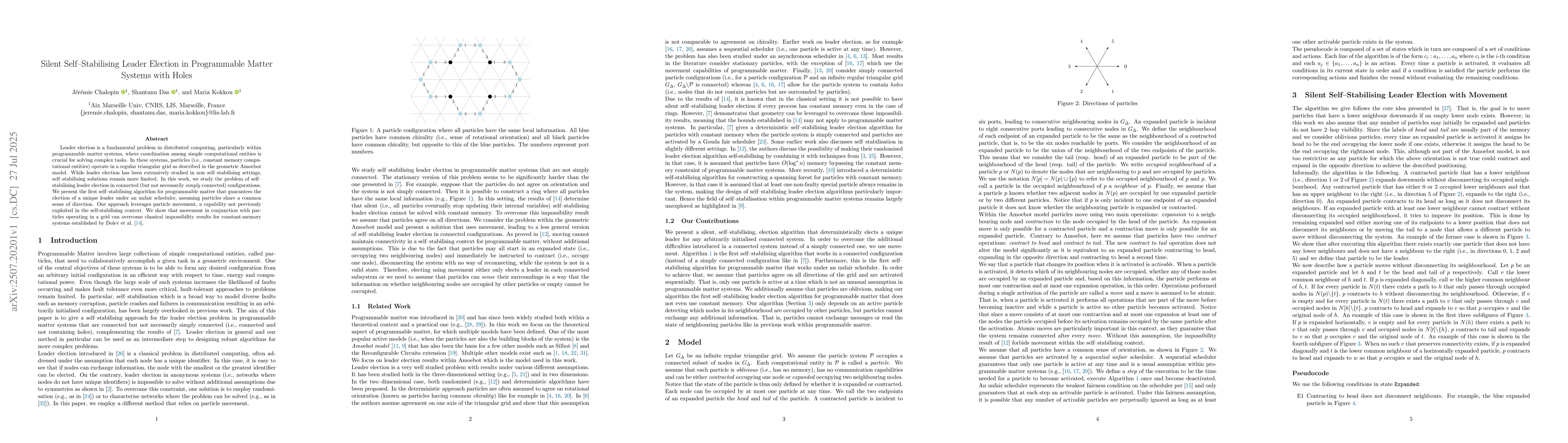 The proposed algorithm for leader election in programmable matter is a significant technical contribution, providing a robust and fault-tolerant solution.