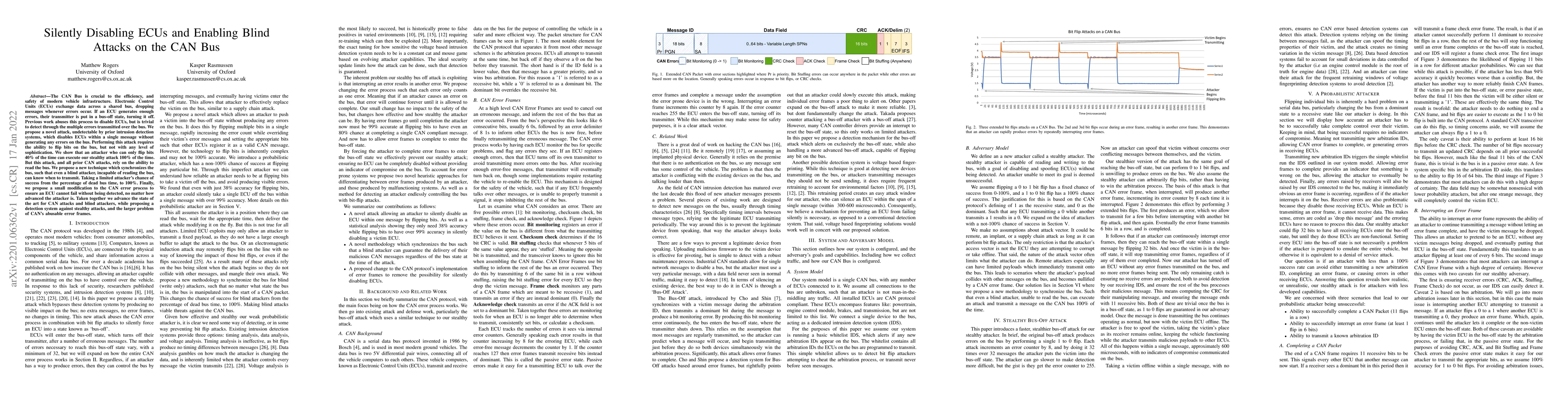 Researchers discover a way to silently disable Electronic Control Units (ECUs) on vehicles without generating errors, making them undetectable by traditional intrusion detection systems. They propose a modification to the CAN error process to ensure ECUs cannot fail without being detected.