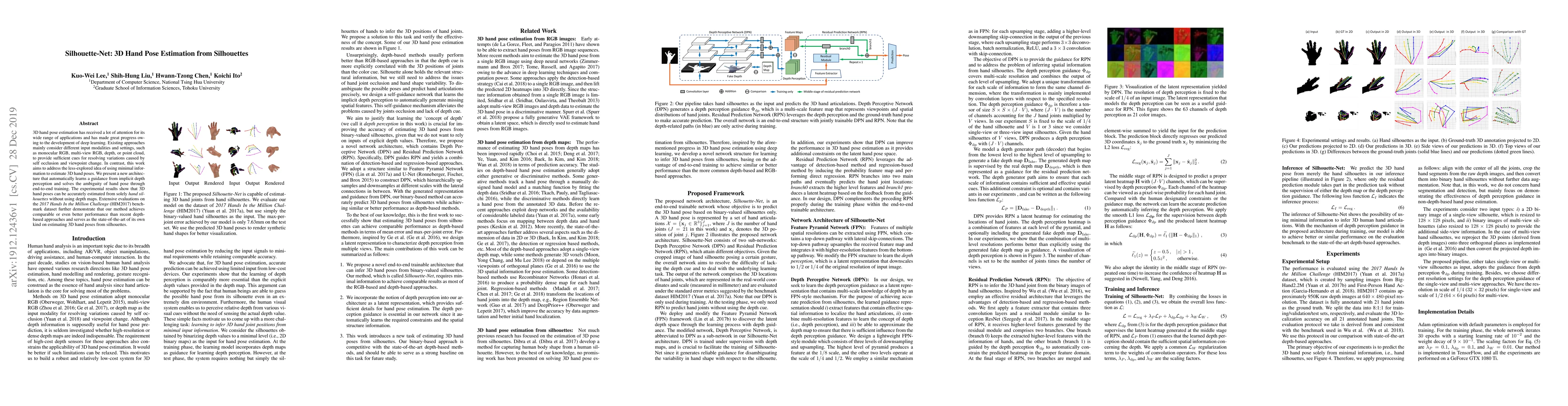 Silhouette-Net presents a novel deep learning architecture for estimating 3D hand poses from hand silhouettes alone, leveraging implicit depth perception. The method achieves state-of-the-art performance on the HIM2017 benchmark, outperforming or matching depth-based approaches.