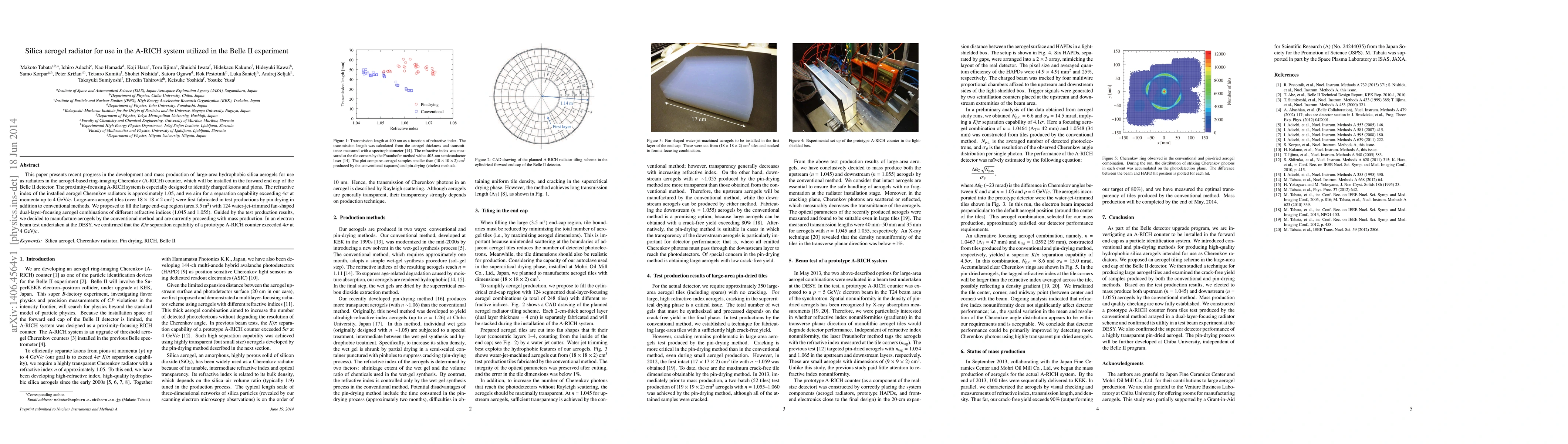 This paper details advancements in producing large-area hydrophobic silica aerogels for use in the A-RICH system of the Belle II experiment, aiming for precise identification of charged kaons and pions. Initial test productions and subsequent mass manufacturing efforts have confirmed the system's capability to separate $K$/$\pi$ particles with a separation exceeding 4$\sigma$ at 4 GeV/$c$.