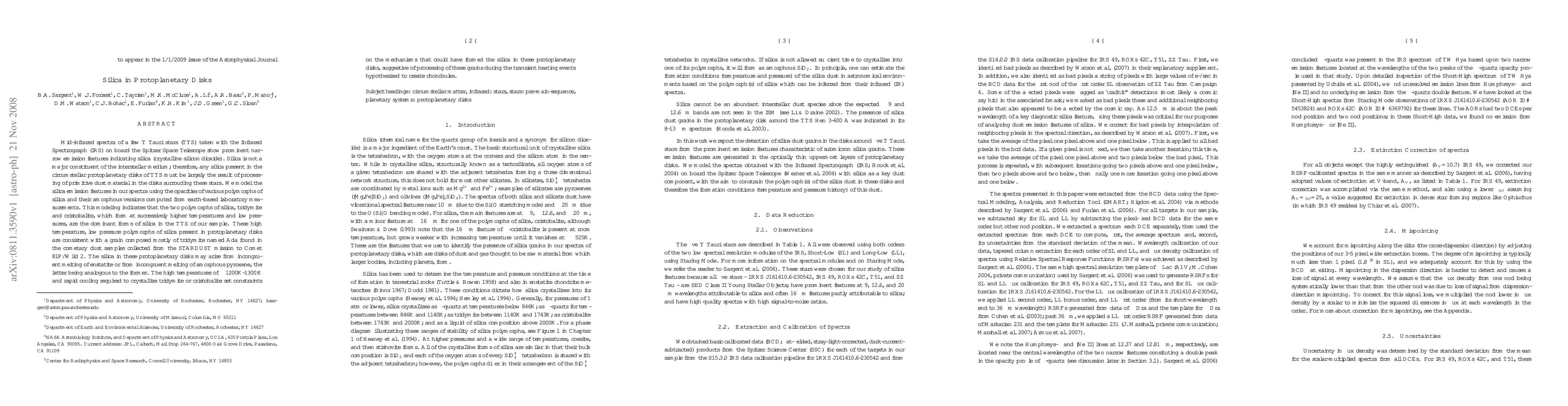 This study identifies silica in protoplanetary disks around T Tauri stars using Spitzer Space Telescope data, revealing the presence of crystalline silica, specifically tridymite and cristobalite, formed through high-temperature processes analogous to those creating chondrules in meteorites. The findings suggest transient heating events in the disks as a possible mechanism for silica formation.