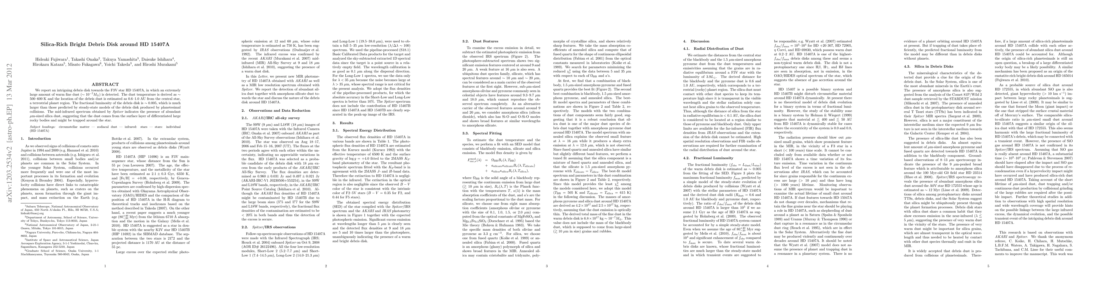 The research utilized infrared observations from AKARI and Spitzer to analyze the debris disk around the F3V star HD 15407A, employing spectral fitting and SED modeling to determine dust properties and distribution.