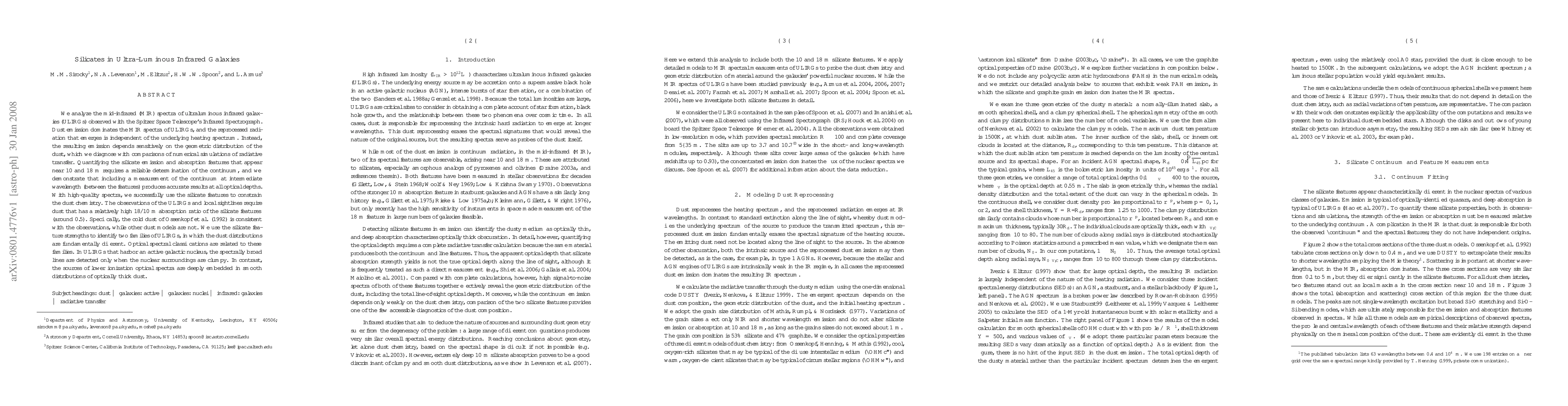 This research uses Spitzer Space Telescope data to study ultraluminous infrared galaxies (ULIRGs). It finds that dust distribution, not the heating source, primarily influences mid-infrared spectra. By accurately measuring silicate emission and absorption features, the study reveals a high 18/10um absorption ratio, suggesting specific dust models. The research identifies two ULIRG dust distribution families linked to optical spectral classifications and nuclear activity.