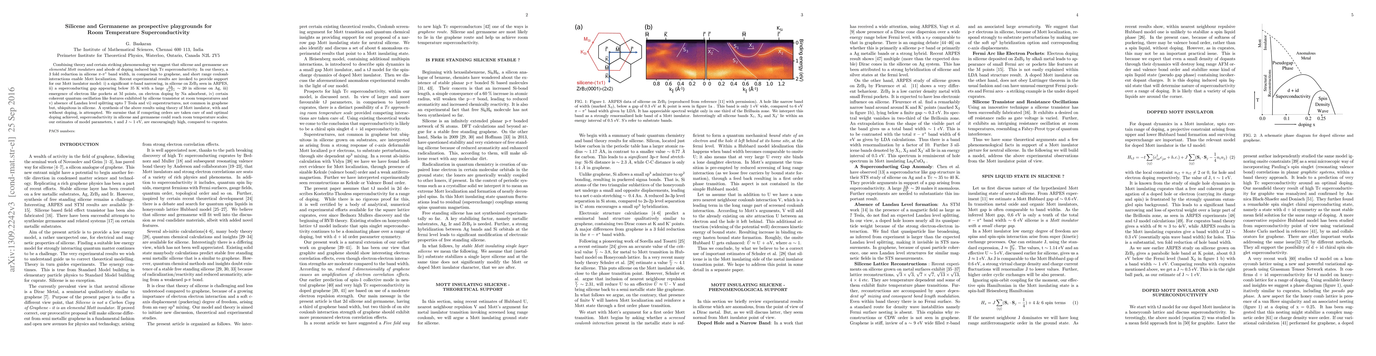Combining theory and certain striking phenomenology we suggest that silicene and germanene are \textit{elemental Mott insulators} and abode of doping induced high Tc superconductivity. In our theory, a 3 fold reduction in silicene $\pi - \pi^*$ band width, in comparison to graphene, and short range coulomb interactions enable Mott localization. Recent experimental results are invoked to provide support for our Mott insulator model: i) a significant $\pi$-band narrowing, in silicene on ZrB$_2$ seen in ARPES, ii) a superconducting gap appearing below 35 K with a large $\frac{2\Delta}{k_BTc}\sim$ 20 in silicene on Ag, iii) emergence of electron like pockets at M points, on electron doping by Na adsorbent, iv) certain coherent quantum oscillation like features exhibited by silicene transistor at room temperatures and v) absence of Landau level splitting upto 7 Tesla and vi) superstructures, not common in graphene but, ubiquitous in silicene. A synthesis of the above results using theory of Mott insulator, with and without doping, is attempted. We surmise that if competing orders are taken care of and optimal doping achieved, superconductivity in silicene and germanene could reach room temperature scales; our estimates of model parameters, t and J $\sim$ 1 eV, are encouragingly high, compared to cuprates.