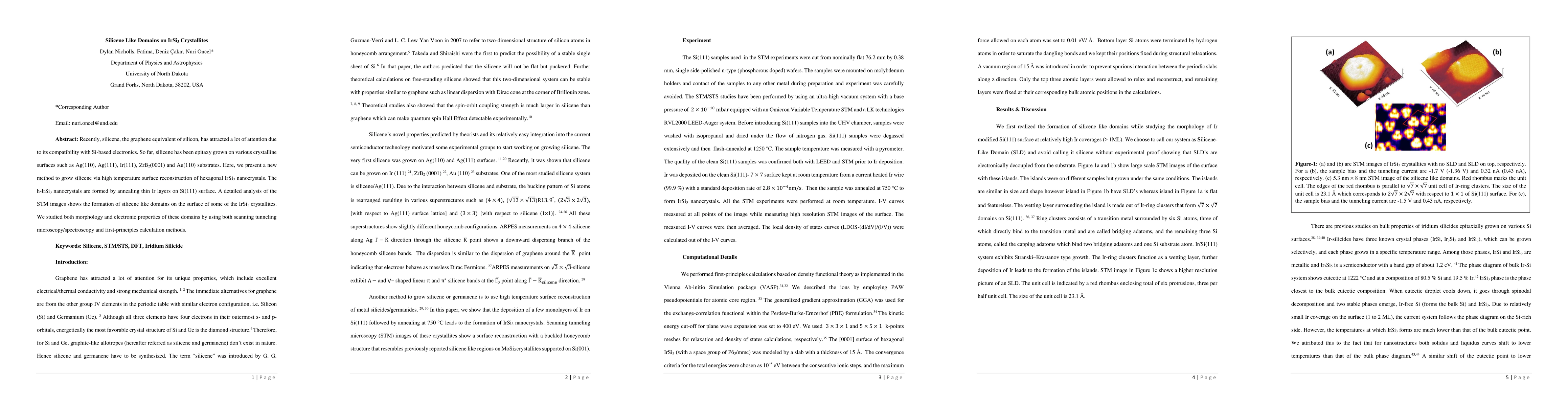 The paper introduces a new method for growing silicene-like domains on IrSi3 crystallites via high-temperature surface reconstruction, supported by STM imaging, scanning tunneling microscopy/spectroscopy, and first-principles calculations.