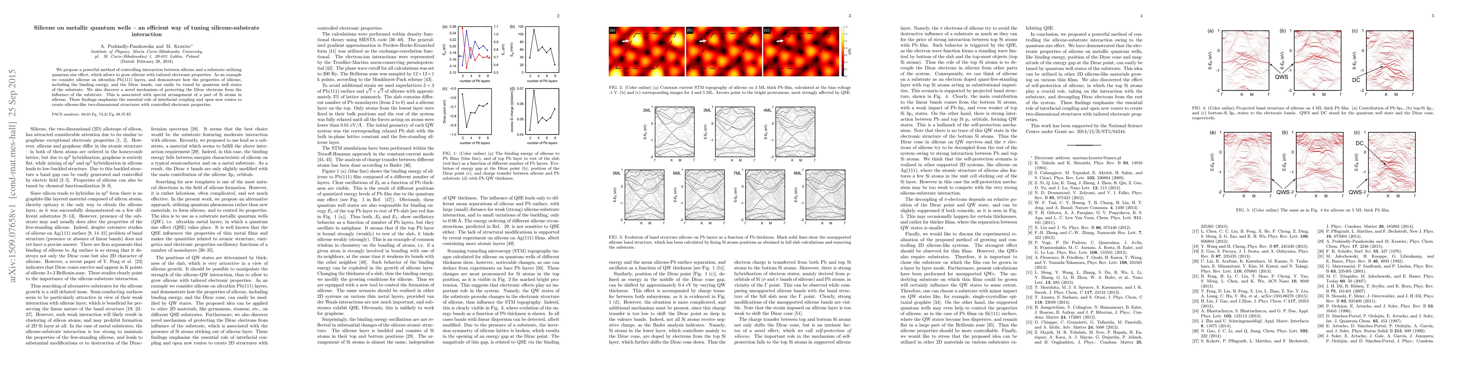 This paper proposes a method to control silicene-substrate interaction using quantum size effects on metallic quantum wells, demonstrating that silicene on ultrathin Pb(111) layers can have its properties, including binding energy and Dirac bands, tuned by the substrate's quantum well states. It also introduces a novel mechanism to protect Dirac electrons, highlighting the importance of interfacial coupling for creating silicene-like structures with desired electronic properties.