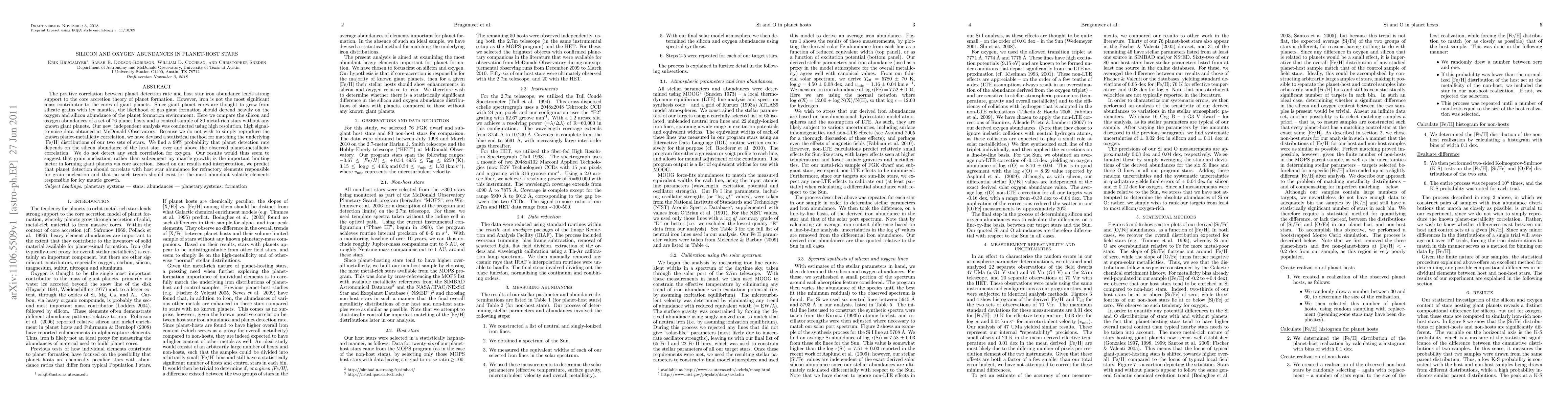 This paper investigates the silicon and oxygen abundances in planet-hosting stars compared to metal-rich stars without planets, finding a significant correlation with silicon but not oxygen. The study suggests that grain nucleation, influenced by silicon, is a critical factor in giant planet formation, rather than the growth of icy mantles.