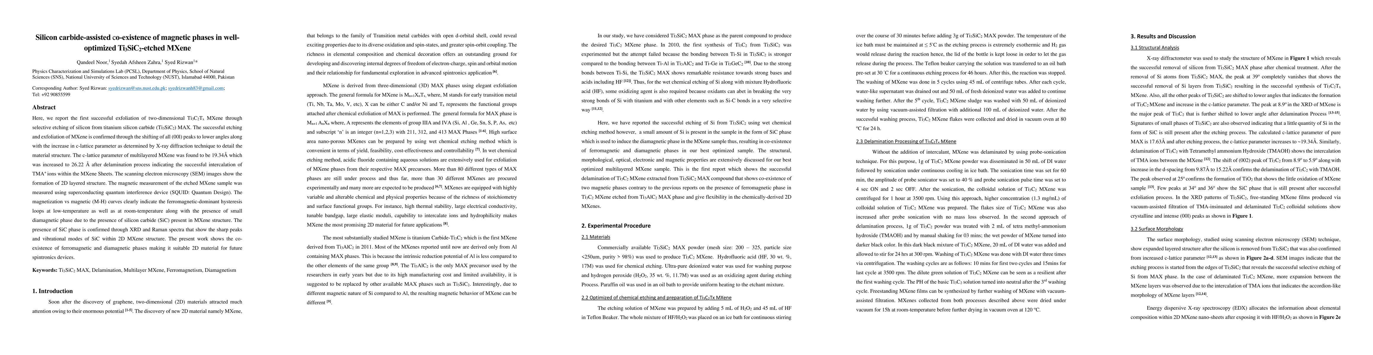 The study presents a novel method for exfoliating Ti3C2T_x MXene from Ti3SiC2 MAX phase, demonstrating the co-existence of ferromagnetic and diamagnetic phases in the resulting 2D material.