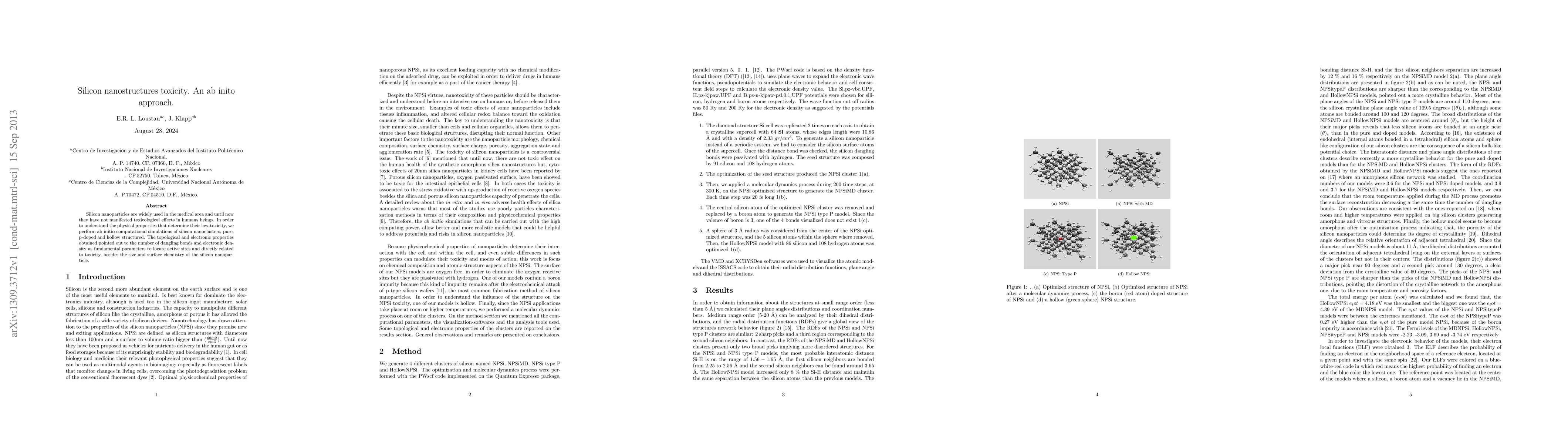 This research uses ab initio computational simulations to investigate the toxicity of silicon nanostructures, finding that the number of dangling bonds and electronic density are key factors influencing their low toxicity, alongside size and surface chemistry.