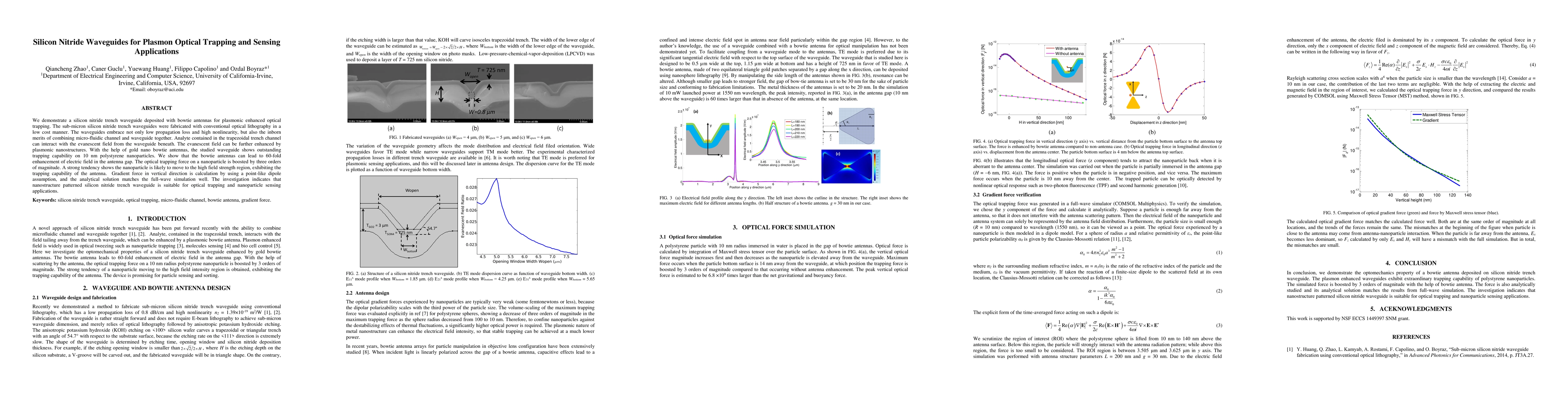 A bowtie antenna deposited on a silicon nitride trench waveguide was used to trap polystyrene nanoparticles.
