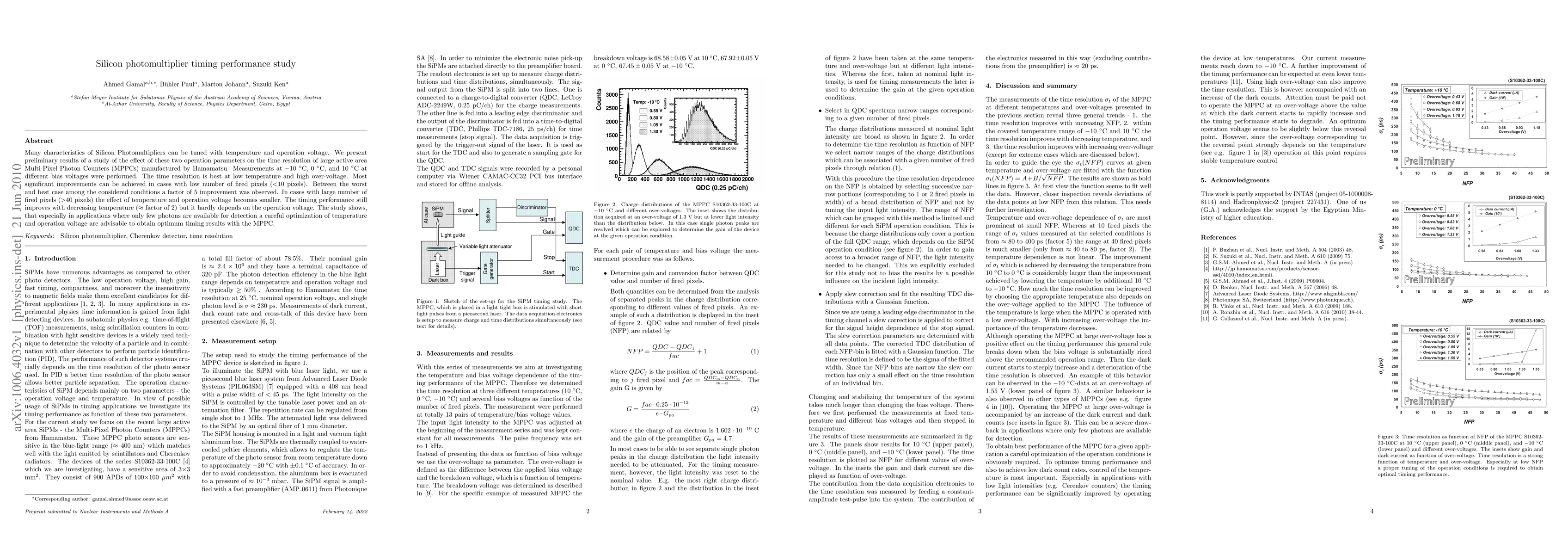 This study explores how temperature and voltage affect the time resolution of Silicon Photomultipliers (SiPMs). Results indicate that lower temperatures and higher over-voltages significantly improve time resolution, especially when fewer pixels are fired. A factor of 5 improvement was noted between worst and best conditions. For many fired pixels, temperature impact is greater than voltage.