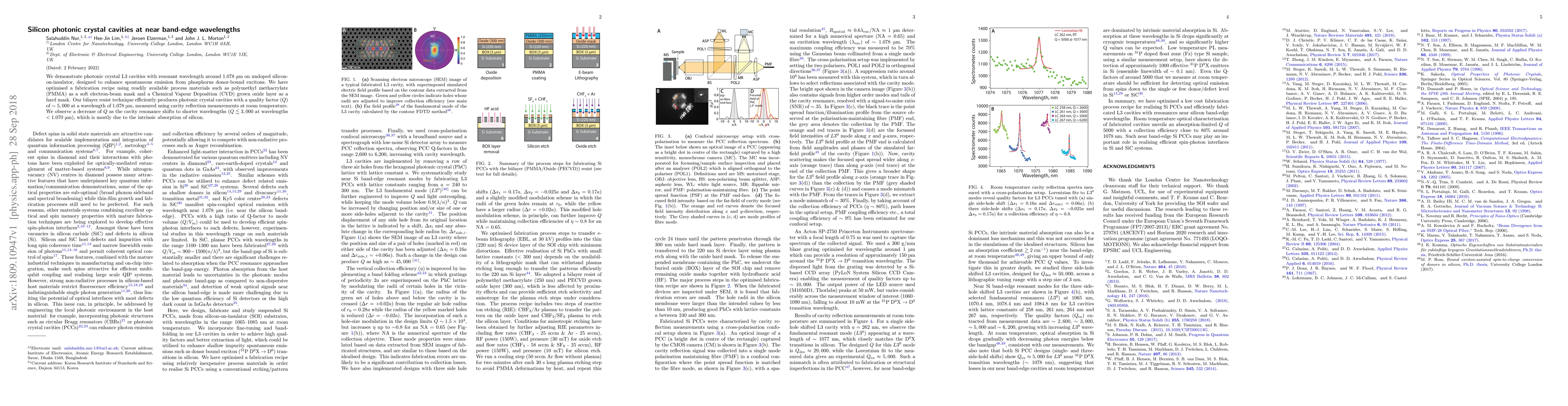 This research presents the fabrication of photonic crystal L3 cavities in silicon-on-insulator to enhance spontaneous emission around 1.078 μm. The cavities achieve a high quality factor ($Q$) of approximately 5,000 at this wavelength using a bilayer resist technique, though $Q$ drops to around 3,000 at shorter wavelengths due to silicon's intrinsic absorption.