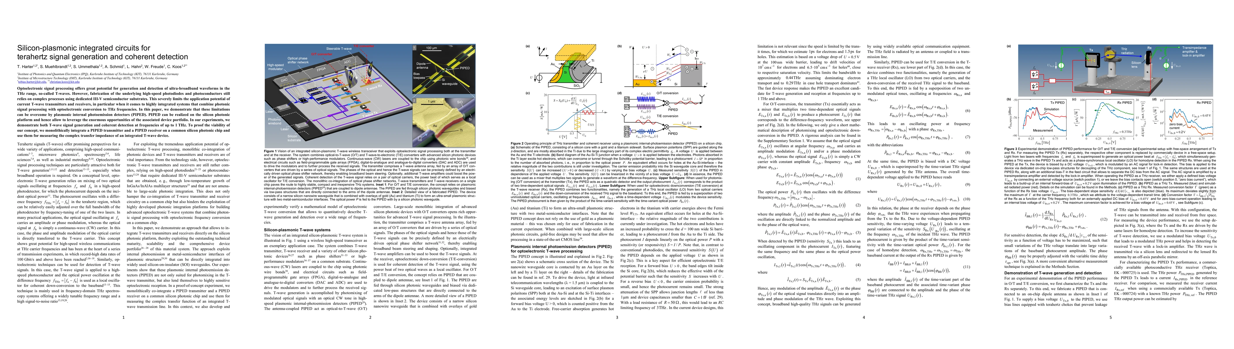 The development and demonstration of plasmonic internal photoemission detectors (PIPED) on the silicon photonic platform for terahertz signal generation and coherent detection.
