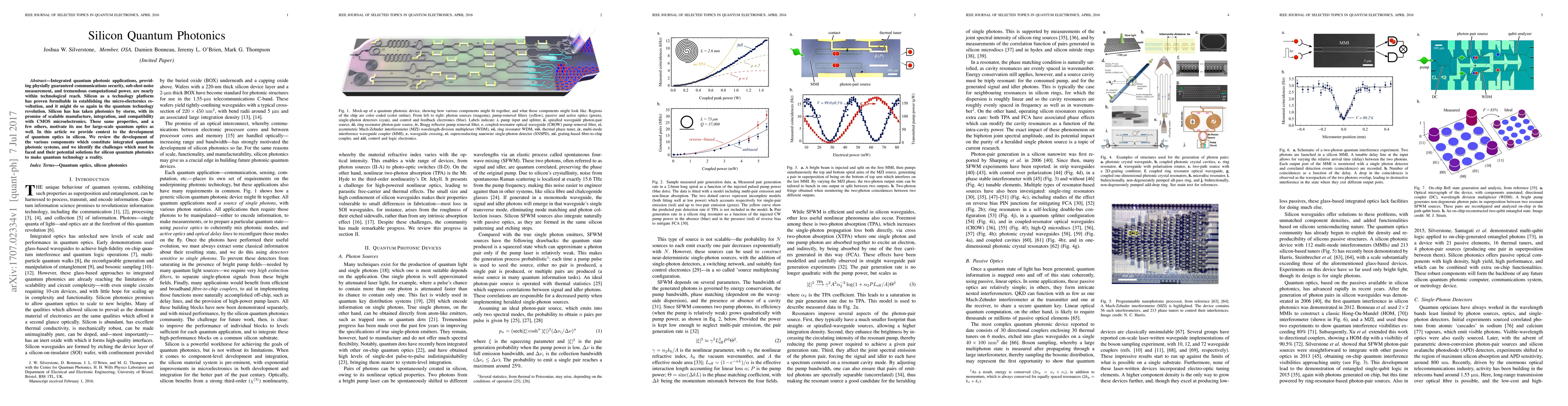 Integrated quantum photonic applications, providing physially guaranteed communications security, sub-shot-noise measurement, and tremendous computational power, are nearly within technological reach. Silicon as a technology platform has proven formibable in establishing the micro-electornics revoltution, and it might do so again in the quantum technology revolution. Silicon has has taken photonics by storm, with its promise of scalable manufacture, integration, and compatibility with CMOS microelectronics. These same properties, and a few others, motivate its use for large-scale quantum optics as well. In this article we provide context to the development of quantum optics in silicon. We review the development of the various components which constitute integrated quantum photonic systems, and we identify the challenges which must be faced and their potential solutions for silicon quantum photonics to make quantum technology a reality.