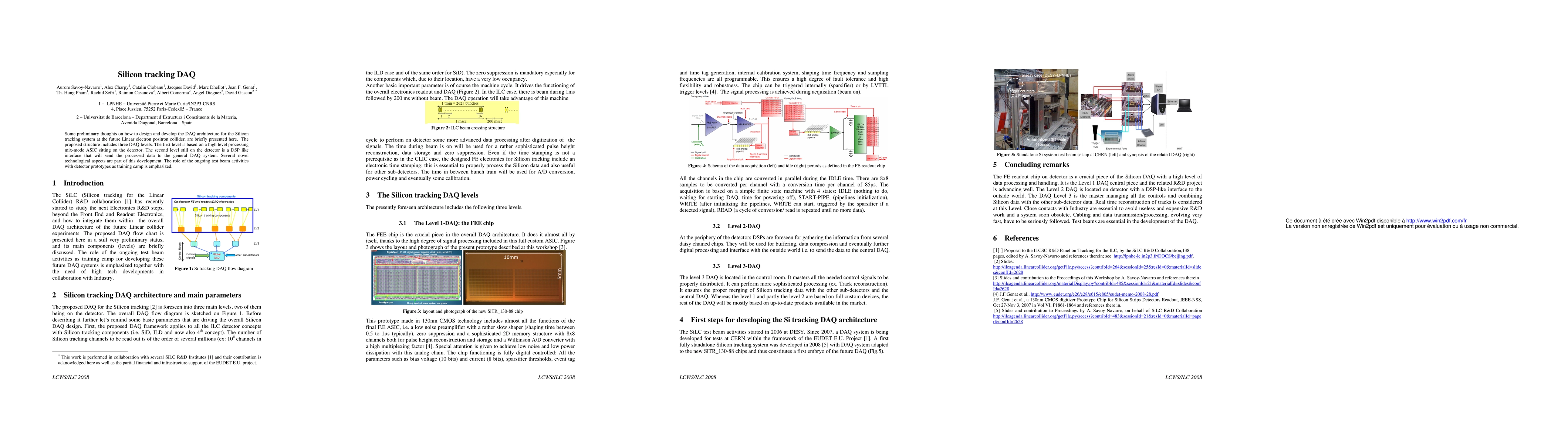 This paper outlines a proposed three-level DAQ architecture for the Silicon tracking system at a future Linear electron positron collider, featuring a high-level processing ASIC and a DSP-like interface for data transmission. It emphasizes the importance of test beam activities with detector prototypes for development.