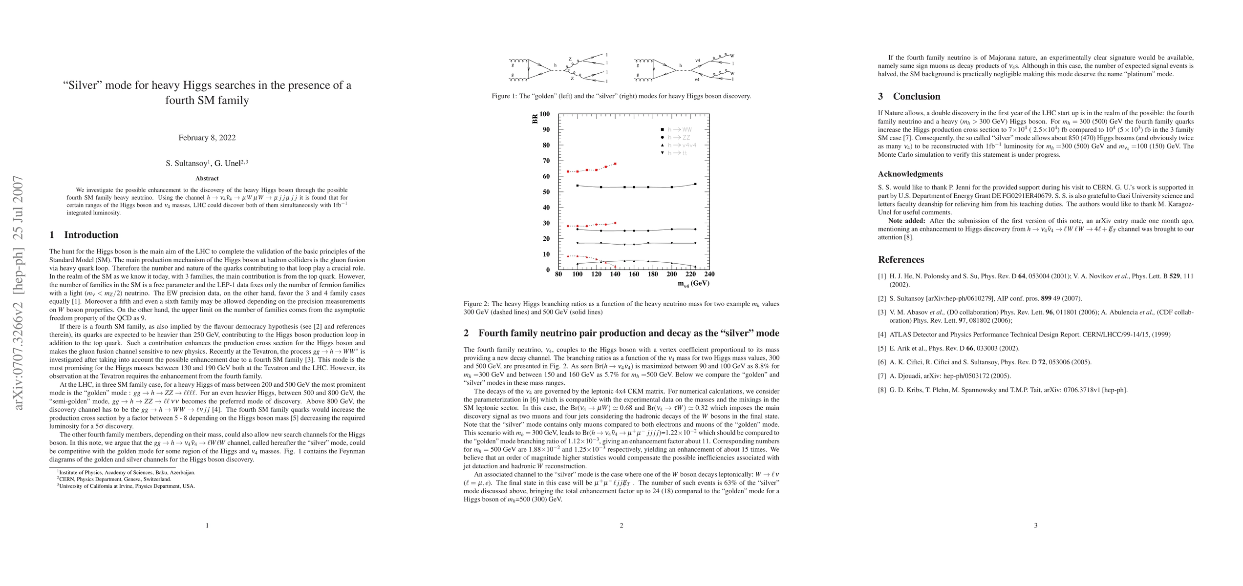 We investigate the possible enhancement to the discovery of the heavy Higgs boson through the possible fourth SM family heavy neutrino. Using the channel h-> v4 v4->mu W mu W-> mu j j mu j j, it is found that for certain ranges of Higgs boson and v4 masses LHC could discover both of them simultaneously with 1 fb^-1 integrated luminosity.