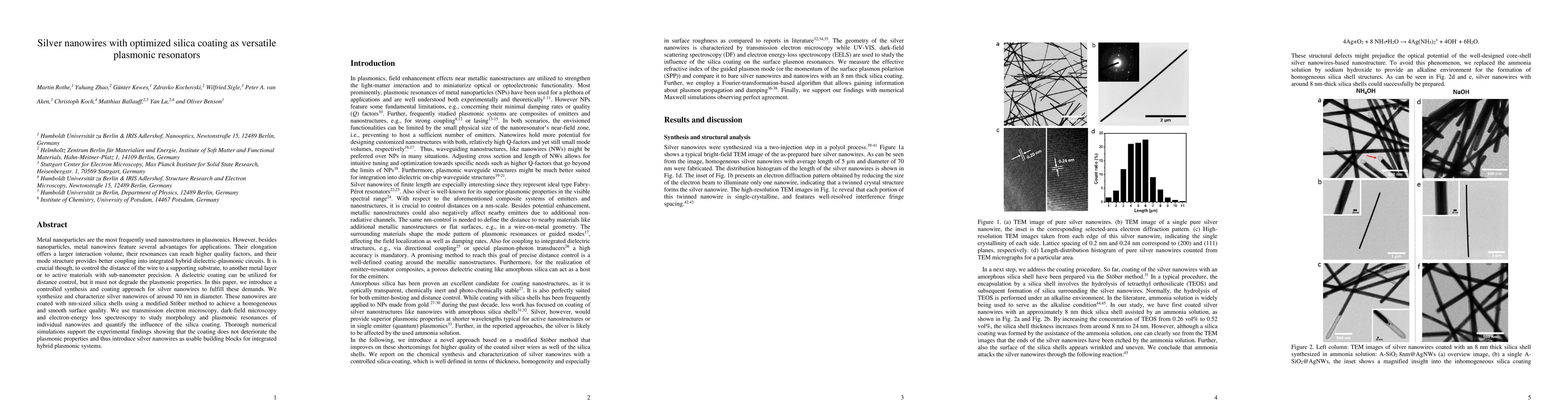 This paper presents a method for synthesizing and coating silver nanowires with silica to optimize their use as plasmonic resonators, ensuring that the dielectric coating preserves their plasmonic properties while controlling the distance from other materials. Experimental and simulation results confirm that the silica coating maintains the nanowires' plasmonic performance, making them suitable for integrated hybrid plasmonic circuits.