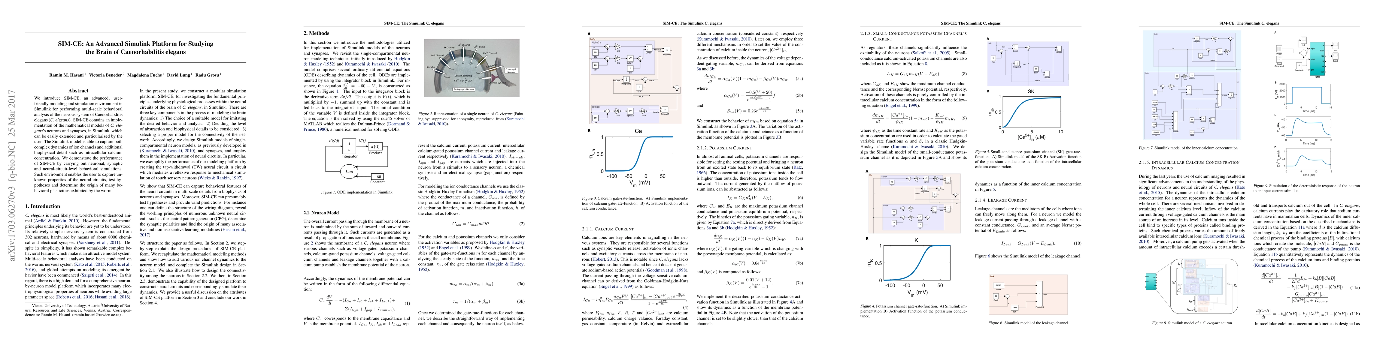 SIM-CE is an advanced Simulink platform designed for multi-scale behavioral analysis of C. elegans's nervous system, featuring customizable mathematical models of neurons and synapses. It enables detailed simulations of neural dynamics and aids in exploring neural circuit properties and behavioral plasticity.