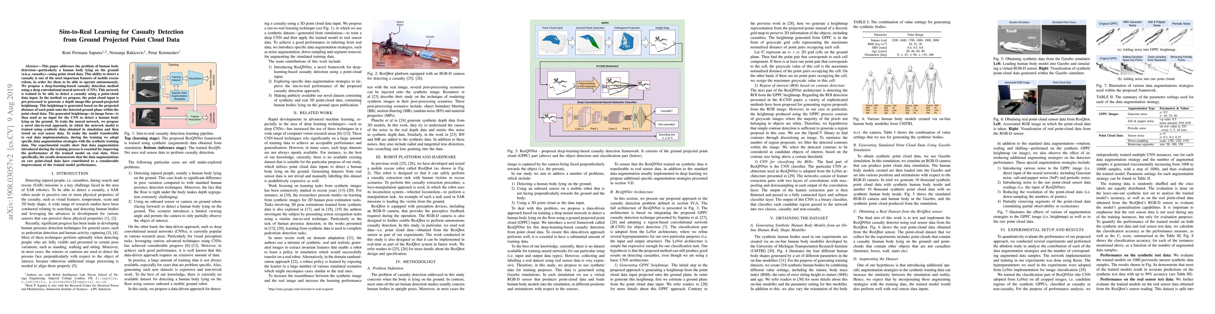 This paper proposes a deep-learning-based method for detecting casualties on the ground using point cloud data, employing a CNN trained on synthetic data and tested on real sensor data. The method uses a pre-processed heightmap derived from point cloud data as input for the CNN, and data augmentation strategies during training significantly improve model performance on real data.