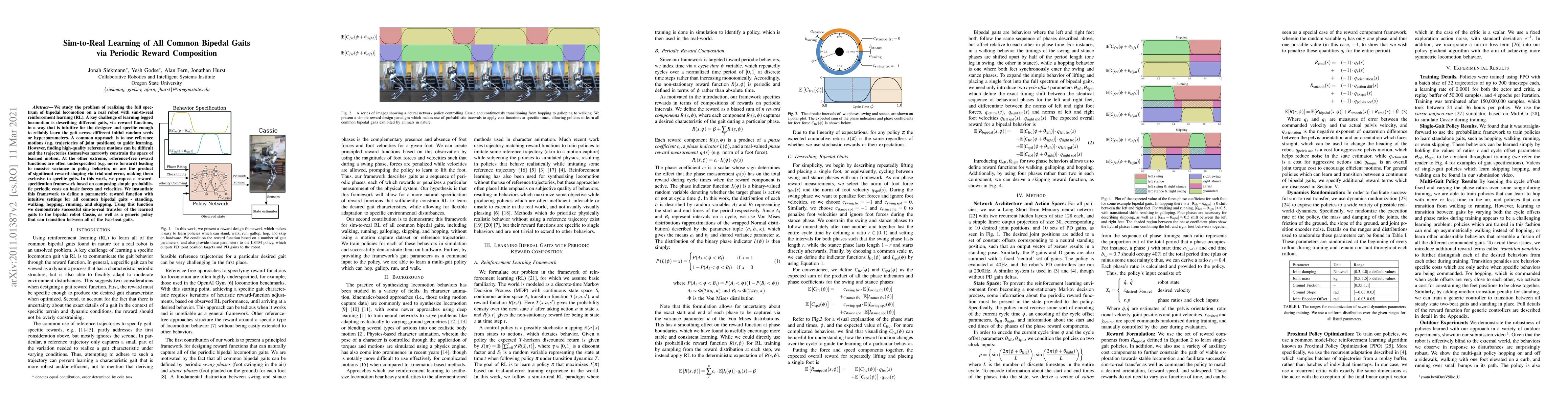 This paper proposes a sim-to-real reinforcement learning framework for teaching a bipedal robot to perform various common gaits using a parametric reward function based on periodic costs on basic forces and velocities. The method enables successful transfer of learned gaits from simulation to the real robot Cassie.