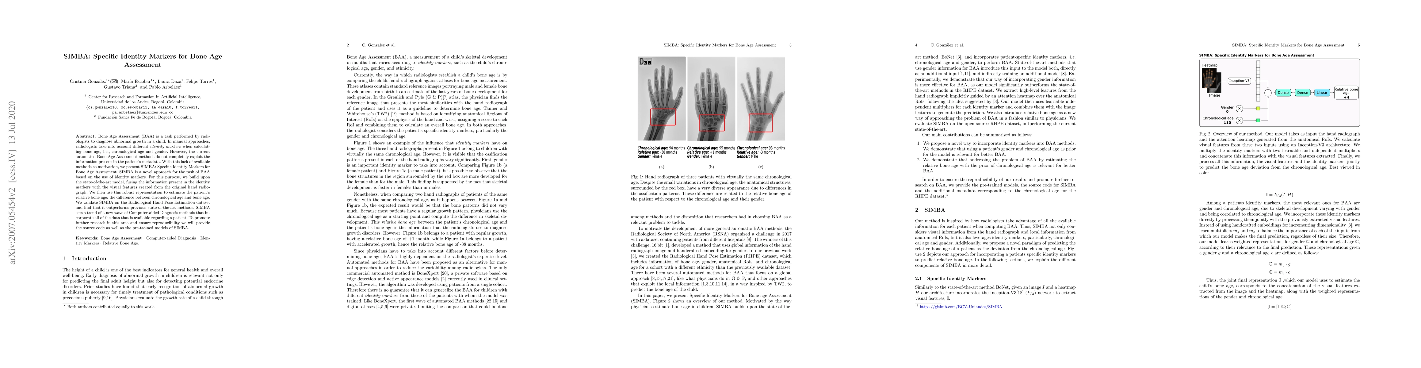 This research is significant as it proposes a new paradigm for BAA by leveraging specific identity markers, such as gender and chronological age, which are often underutilized in automated methods. By demonstrating improved performance on the RHPE dataset, SIMBA encourages further research in incorporating comprehensive patient data for Computer-aided Diagnosis methods.