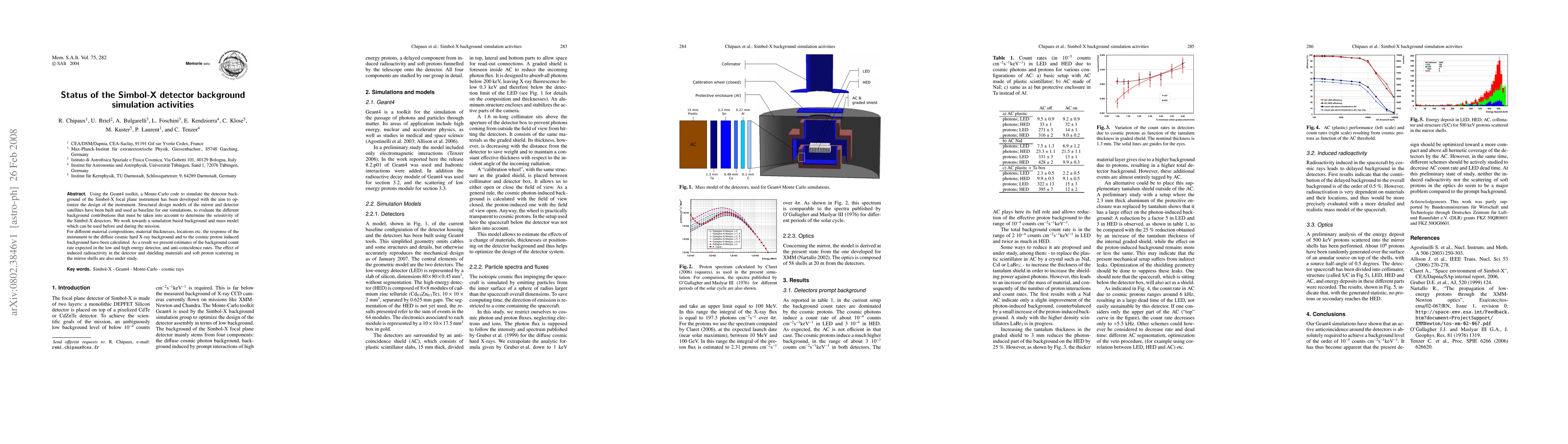 This paper uses the Geant4 toolkit to simulate the detector background for Simbol-X's focal plane instrument, aiming to optimize its design. The study evaluates various background contributions and presents estimates for the expected background count rates, considering factors like material composition and induced radioactivity.