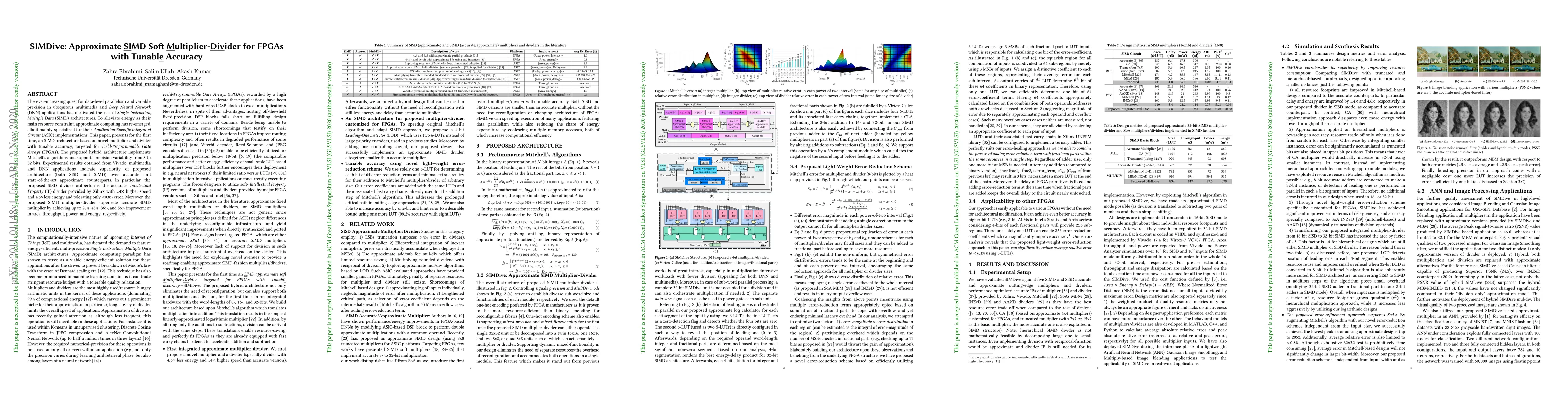 This paper introduces SIMDive, an approximate SIMD soft multiplier-divider for FPGAs with tunable accuracy, achieving superior performance in terms of speed, energy efficiency, and area compared to accurate counterparts, while tolerating minimal error. The hybrid architecture supports precision variability and demonstrates significant improvements in multimedia and DNN applications.