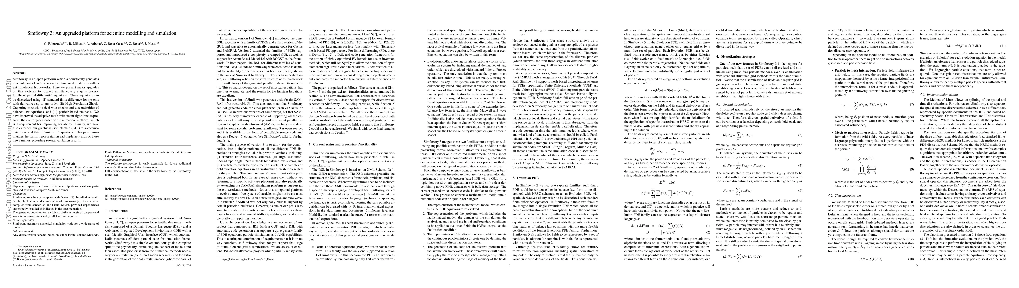 Simflowny is an open platform which automatically generates efficient parallel code of scientific dynamical models for different simulation frameworks. Here we present major upgrades on this software to support simultaneously a quite generic family of partial differential equations. These equations can be discretized using: (i) standard finite-difference for systems with derivatives up to any order, (ii) High-Resolution-Shock-Capturing methods to deal with shocks and discontinuities of balance law equations, and (iii) particle-based methods. We have improved the adaptive-mesh-refinement algorithms to preserve the convergence order of the numerical methods, which is a requirement for improving scalability. Finally, we have also extended our graphical user interface (GUI) to accommodate these and future families of equations. This paper summarizes the formal representation and implementation of these new families, providing several validation results.