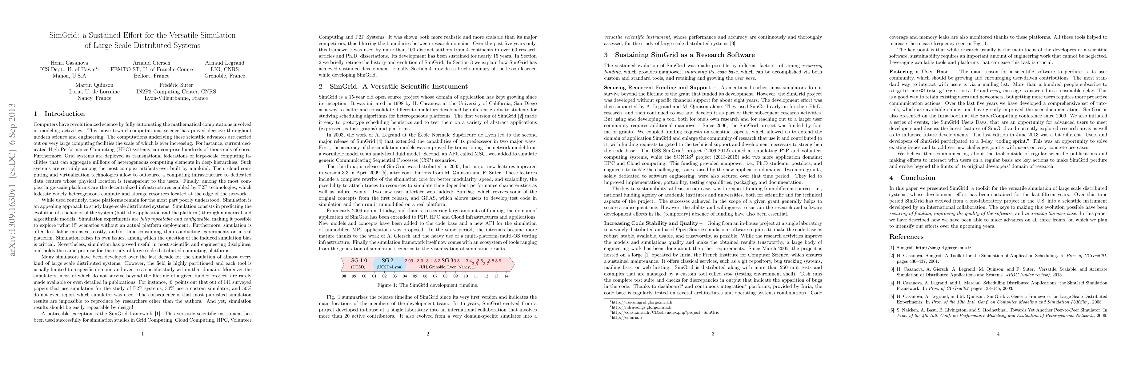 In this paper we present Simgrid, a toolkit for the versatile simulation of large scale distributed systems, whose development effort has been sustained for the last fifteen years. Over this time period SimGrid has evolved from a one-laboratory project in the U.S. into a scientific instrument developed by an international collaboration. The keys to making this evolution possible have been securing of funding, improving the quality of the software, and increasing the user base. In this paper we describe how we have been able to make advances on all three fronts, on which we plan to intensify our efforts over the upcoming years.