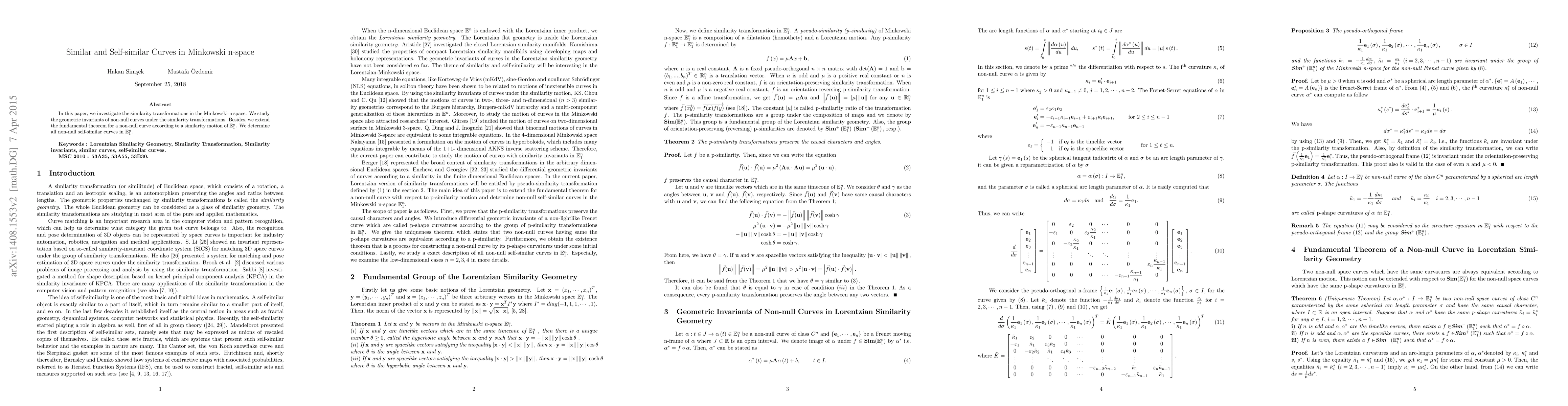 The paper explores similarity transformations in Minkowski n-space, focusing on geometric invariants of non-null curves and extending the fundamental theorem for non-null curves under these transformations. It also identifies all non-null self-similar curves in Minkowski n-space.