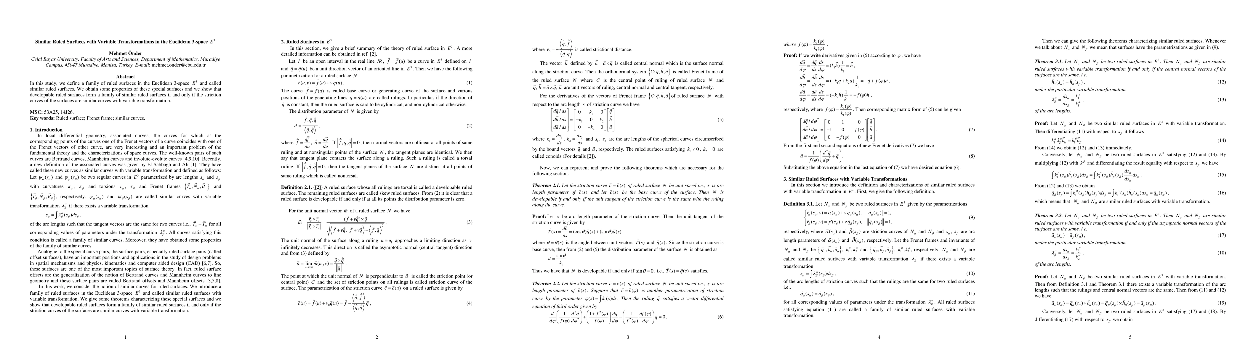This paper defines a family of similar ruled surfaces in Euclidean 3-space and investigates their properties. It concludes that developable ruled surfaces are part of this family if their striction curves are similar under variable transformations.