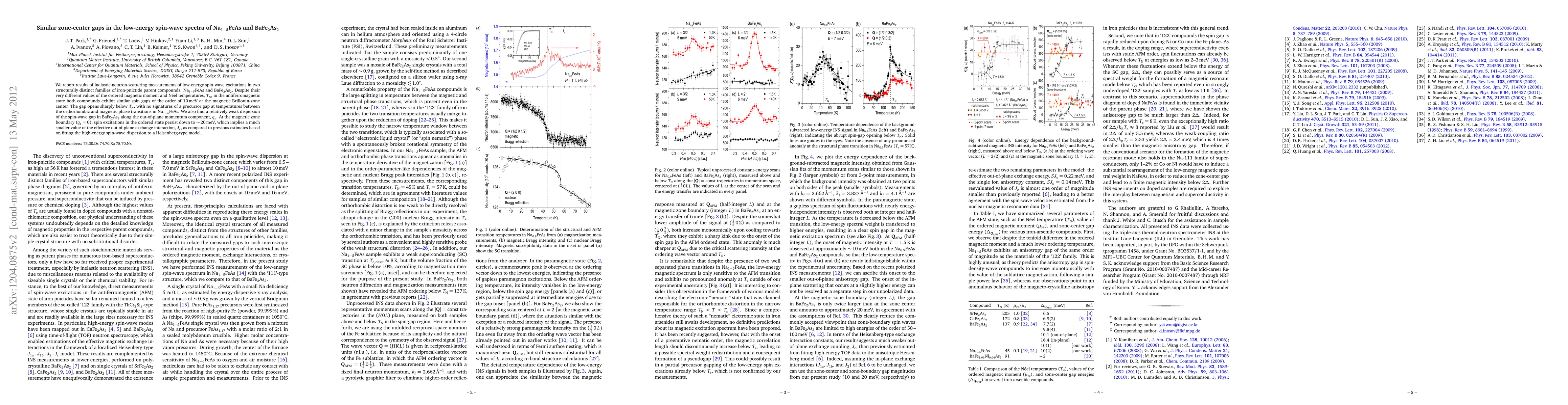 This study, using inelastic neutron scattering, reveals similar spin gaps of about 10 meV at the magnetic Brillouin-zone center in Na(1-δ)FeAs and BaFe2As2, despite their differing magnetic moments and Néel temperatures. The gap sharply opens below Néel temperature, with no precursor gap in Na(1-δ)FeAs. BaFe2As2 shows weak dispersion of the spin-wave gap along the out-of-plane momentum component, with spin excitations at the magnetic zone boundary persisting down to 20 meV, suggesting a smaller effective out-of-plane exchange interaction, J_c, than previously estimated.