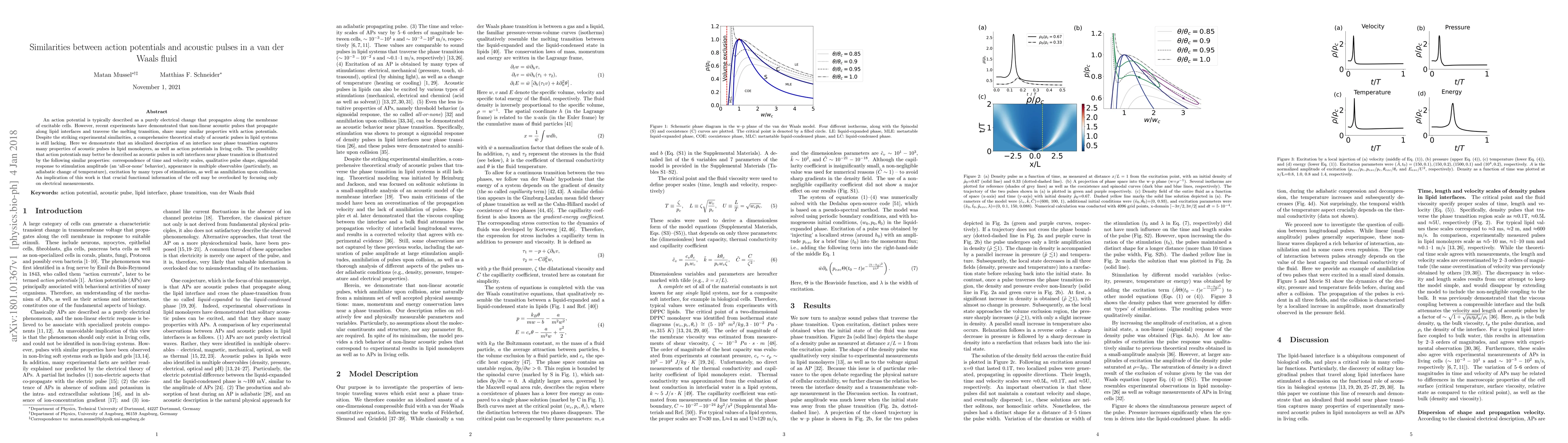 This paper explores the similarities between action potentials in excitable cells and non-linear acoustic pulses in van der Waals fluids, suggesting that both phenomena share properties such as time and velocity scales, pulse shape, and response to stimulation. The study proposes that action potentials could be acoustic pulses in lipid interfaces near phase transitions, highlighting the potential importance of considering non-electrical properties in cellular function.
