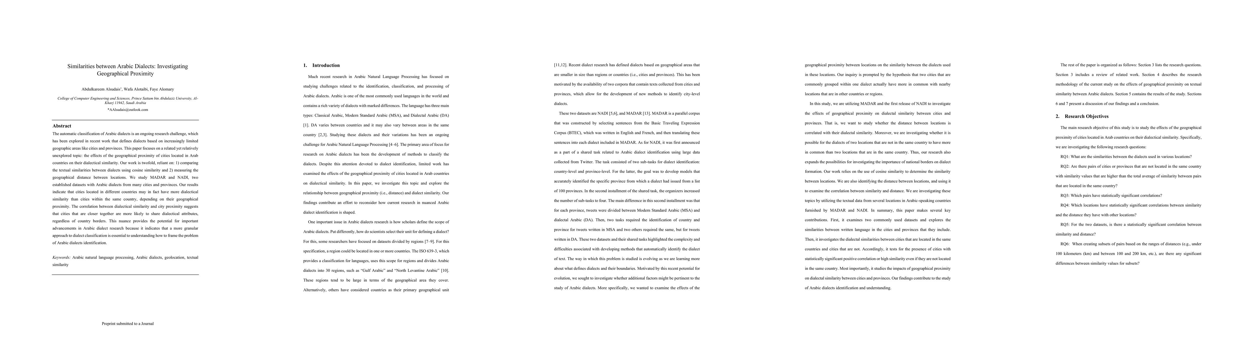 This paper investigates how geographical proximity influences the similarity between Arabic dialects, finding that cities closer together, regardless of national borders, tend to share more dialectical features. The study uses cosine similarity and geographical distance measurements on MADAR and NADI datasets, revealing nuanced insights for dialect classification research.