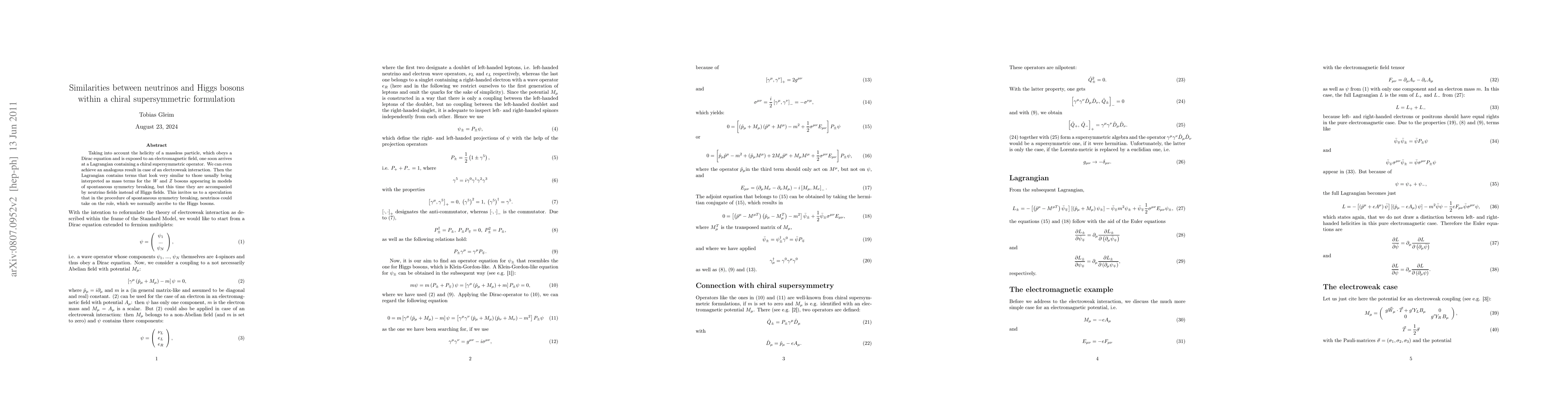 Research suggests neutrinos may play a role similar to Higgs bosons in spontaneous symmetry breaking, leading to similarities between the two particles within a chiral supersymmetric formulation.