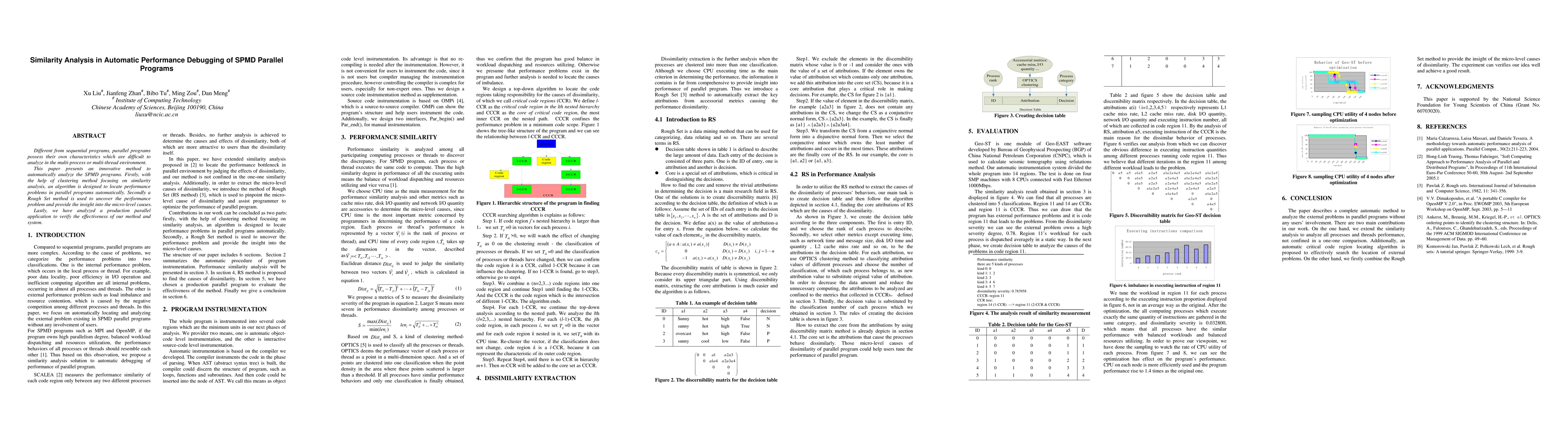 This paper introduces a novel method for automatically debugging SPMD parallel programs by employing clustering for similarity analysis to locate performance issues and using Rough Set theory to uncover micro-level causes. The effectiveness of the proposed approach is validated through the analysis of a production parallel application.