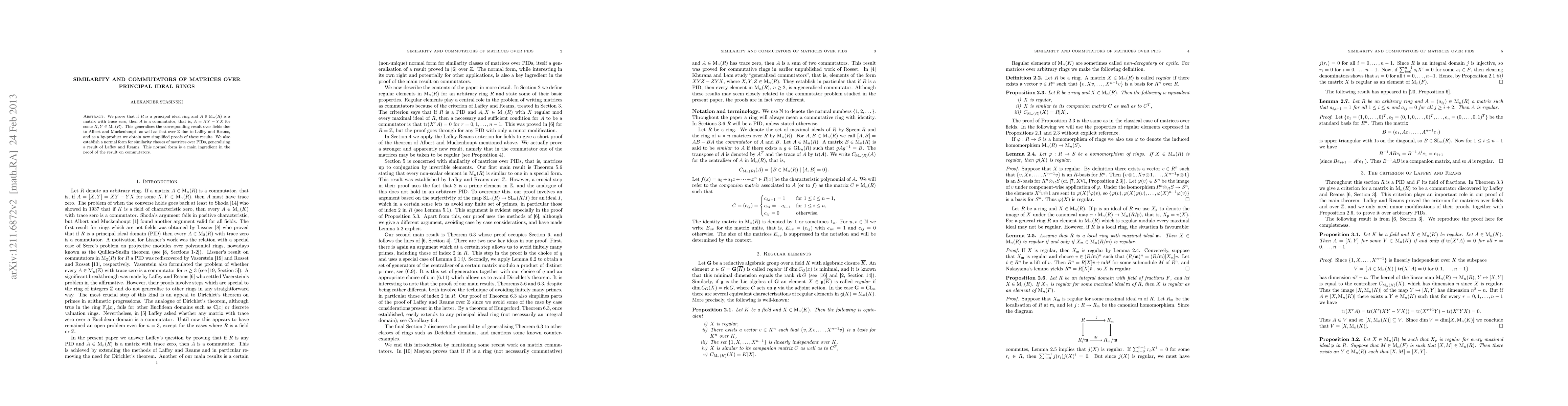 This paper proves that matrices over principal ideal rings with trace zero are commutators, generalizing results previously shown for fields and the integers. It also establishes a normal form for similarity classes of matrices over principal ideal domains, serving as a key component in the commutator proof.