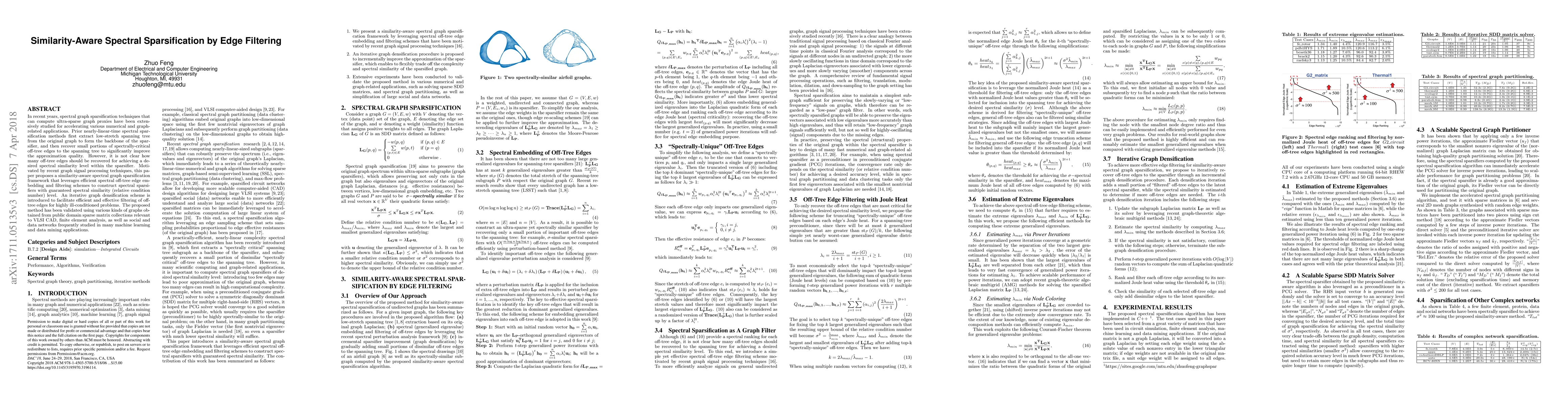 In recent years, spectral graph sparsification techniques that can compute ultra-sparse graph proxies have been extensively studied for accelerating various numerical and graph-related applications. Prior nearly-linear-time spectral sparsification methods first extract low-stretch spanning tree from the original graph to form the backbone of the sparsifier, and then recover small portions of spectrally-critical off-tree edges to the spanning tree to significantly improve the approximation quality. However, it is not clear how many off-tree edges should be recovered for achieving a desired spectral similarity level within the sparsifier. Motivated by recent graph signal processing techniques, this paper proposes a similarity-aware spectral graph sparsification framework that leverages efficient spectral off-tree edge embedding and filtering schemes to construct spectral sparsifiers with guaranteed spectral similarity (relative condition number) level. An iterative graph densification scheme is introduced to facilitate efficient and effective filtering of off-tree edges for highly ill-conditioned problems. The proposed method has been validated using various kinds of graphs obtained from public domain sparse matrix collections relevant to VLSI CAD, finite element analysis, as well as social and data networks frequently studied in many machine learning and data mining applications.