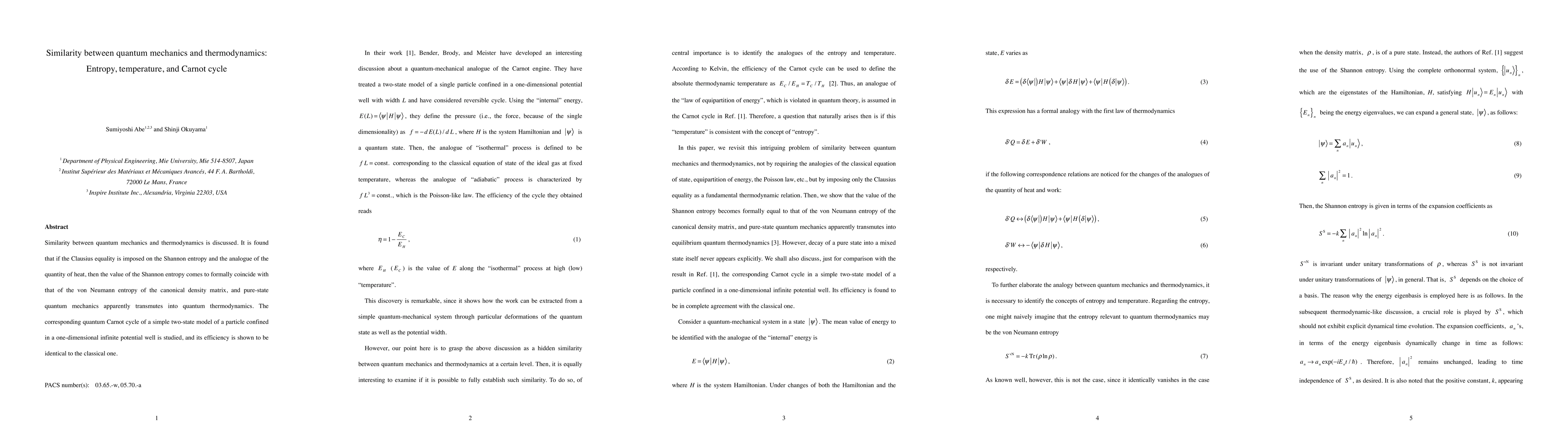 Research finds that quantum mechanics and thermodynamics share similarities when certain conditions are met, leading to a quantum Carnot cycle with identical efficiency as its classical counterpart.