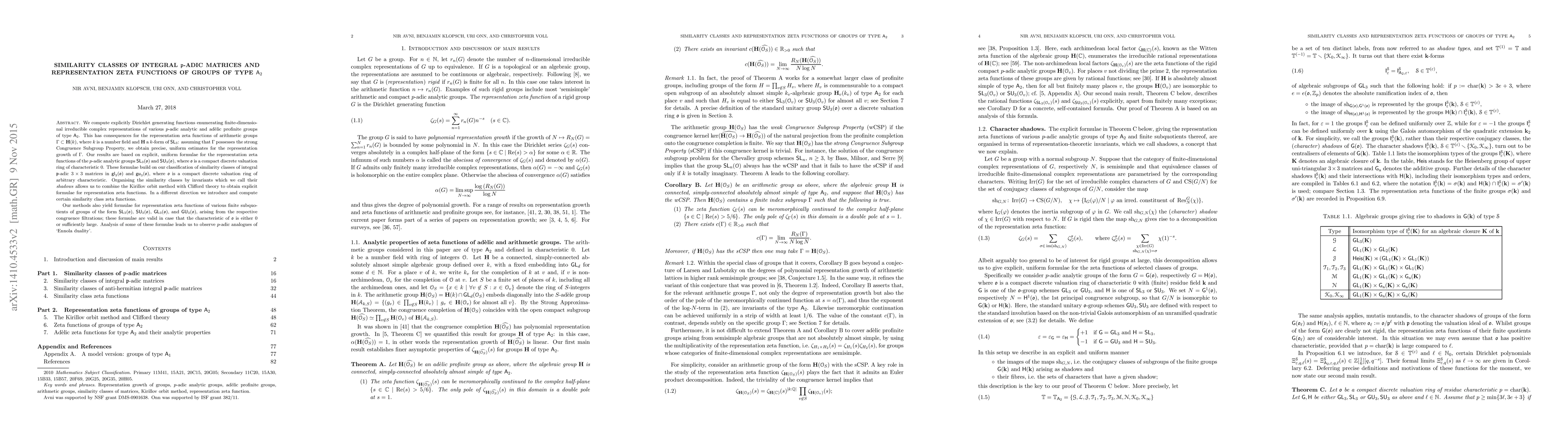 We compute explicitly Dirichlet generating functions enumerating finite-dimensional irreducible complex representations of various $p$-adic analytic and adelic profinite groups of type $\mathsf{A}_2$. This has consequences for the representation zeta functions of arithmetic groups $\Gamma \subset \mathbf{H}(k)$, where $k$ is a number field and $\mathbf{H}$ a $k$-form of $\mathsf{SL}_3$: assuming that $\Gamma$ possesses the strong Congruence Subgroup Property, we obtain precise, uniform estimates for the representation growth of $\Gamma$. Our results are based on explicit, uniform formulae for the representation zeta functions of the $p$-adic analytic groups $\mathsf{SL}_3(\mathfrak{o})$ and $\mathsf{SU}_3(\mathfrak{o})$, where $\mathfrak{o}$ is a compact discrete valuation ring of characteristic $0$. These formulae build on our classification of similarity classes of integral $\mathfrak{p}$-adic $3\times3$ matrices in $\mathfrak{gl}_3(\mathfrak{o})$ and $\mathfrak{gu}_3(\mathfrak{o})$, where $\mathfrak{o}$ is a compact discrete valuation ring of arbitrary characteristic. Organising the similarity classes by invariants which we call their shadows allows us to combine the Kirillov orbit method with Clifford theory to obtain explicit formulae for representation zeta functions. In a different direction we introduce and compute certain similarity class zeta functions. Our methods also yield formulae for representation zeta functions of various finite subquotients of groups of the form $\mathsf{SL}_3(\mathfrak{o})$, $\mathsf{SU}_3(\mathfrak{o})$, $\mathsf{GL}_3(\mathfrak{o})$, and $\mathsf{GU}_3(\mathfrak{o})$, arising from the respective congruence filtrations; these formulae are valid in case that the characteristic of $\mathfrak{o}$ is either $0$ or sufficiently large. Analysis of some of these formulae leads us to observe $p$-adic analogues of `Ennola duality'.