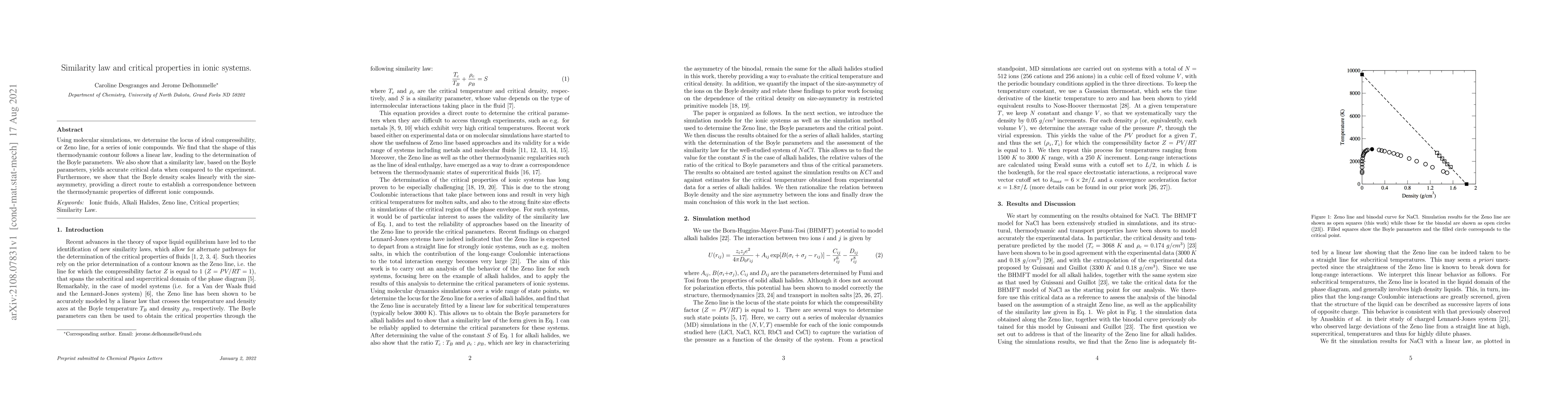 The research uses molecular simulations to identify a linear Zeno line for various ionic compounds, determining Boyle parameters and predicting critical data accurately. It also reveals a linear relationship between Boyle density and size-asymmetry, offering a method to correlate thermodynamic properties among diverse ionic compounds.