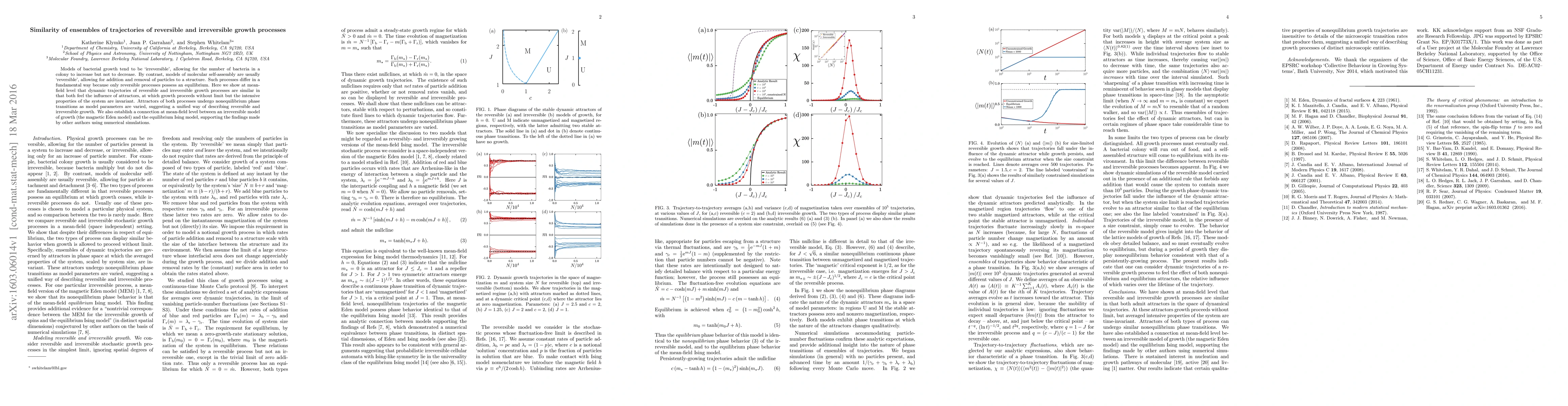 This paper demonstrates that despite the fundamental differences between reversible and irreversible growth processes, their trajectories exhibit similar dynamic behavior influenced by attractors. It also reveals a connection between an irreversible growth model and the equilibrium Ising model at a mean-field level.