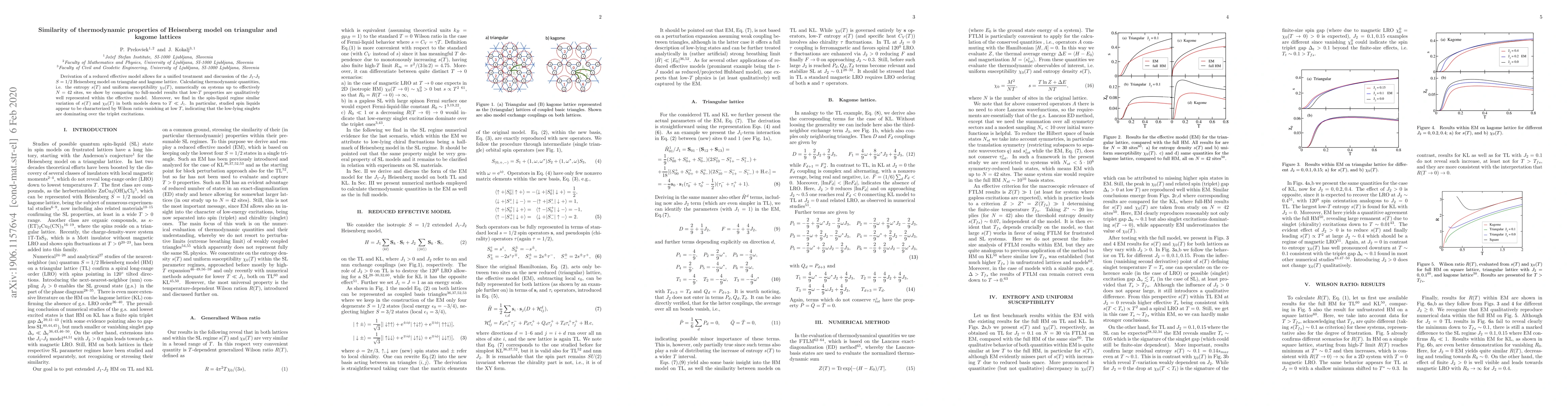 This research derives a simplified model to study the thermodynamic properties of the Heisenberg model on triangular and kagome lattices. Numerical calculations of entropy and susceptibility show that the simplified model accurately represents low-temperature behavior in both lattice structures, revealing similar spin-liquid characteristics indicated by a vanishing Wilson ratio.