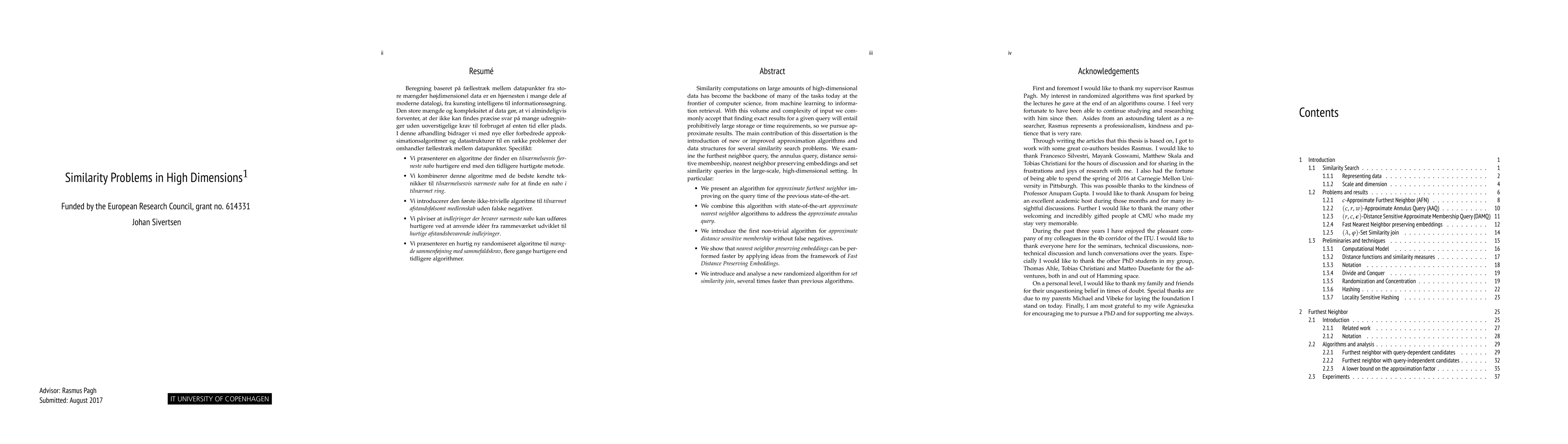 This dissertation introduces advanced approximation algorithms and data structures for various similarity search problems, including furthest neighbor queries and set similarity queries, specifically tailored for high-dimensional, large-scale data. The focus is on improving efficiency and accuracy in similarity searches.