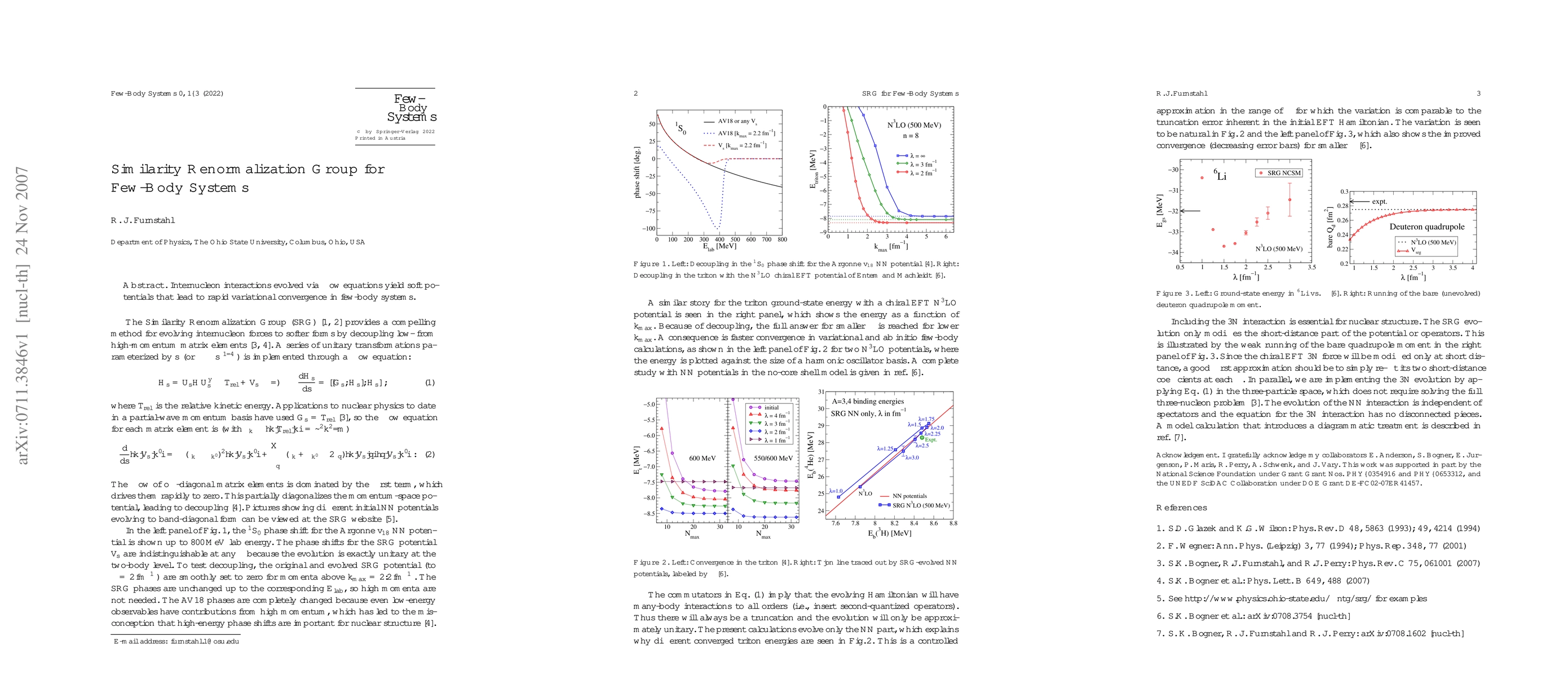 Summary: The paper utilizes the Similarity Renormalization Group (SRG) to evolve internucleon interactions, resulting in soft potentials that significantly enhance variational convergence in few-body systems. This method provides an effective framework for studying nuclear forces at low energies.