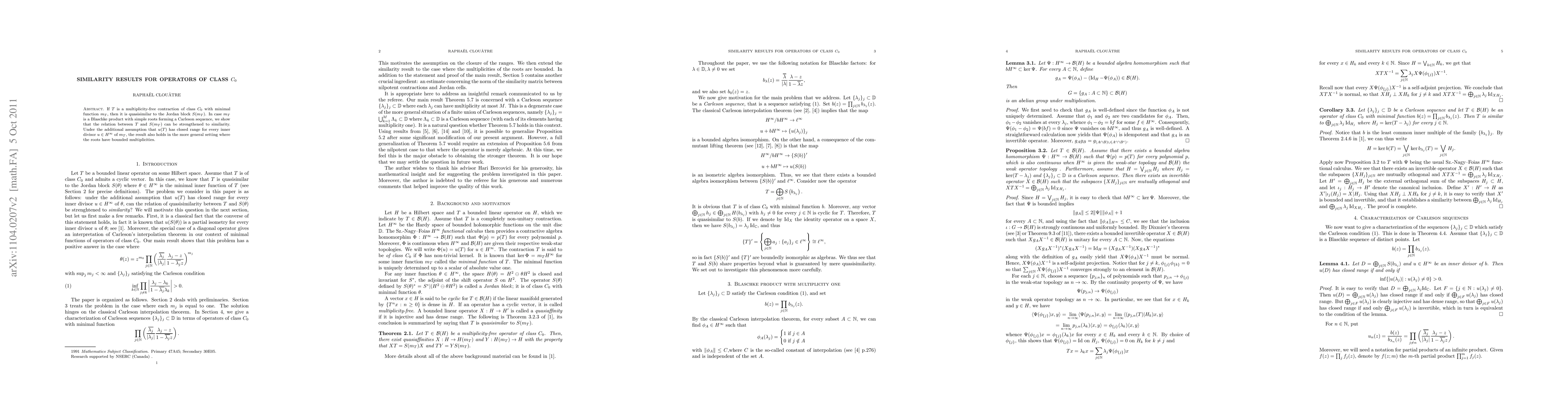 If T is a multiplicity-free contraction of class C_0 with minimal function m_T, then it is quasisimilar to the Jordan block S(m_T). In case m_T is a Blaschke product with simple roots forming a Carleson sequence, we show that the relation between T and S(m_T) can be strengthened to similarity. Under the additional assumption that u(T) has closed range for every inner divisor u of m_T, the result also holds in the more general setting where the roots have bounded multiplicities.