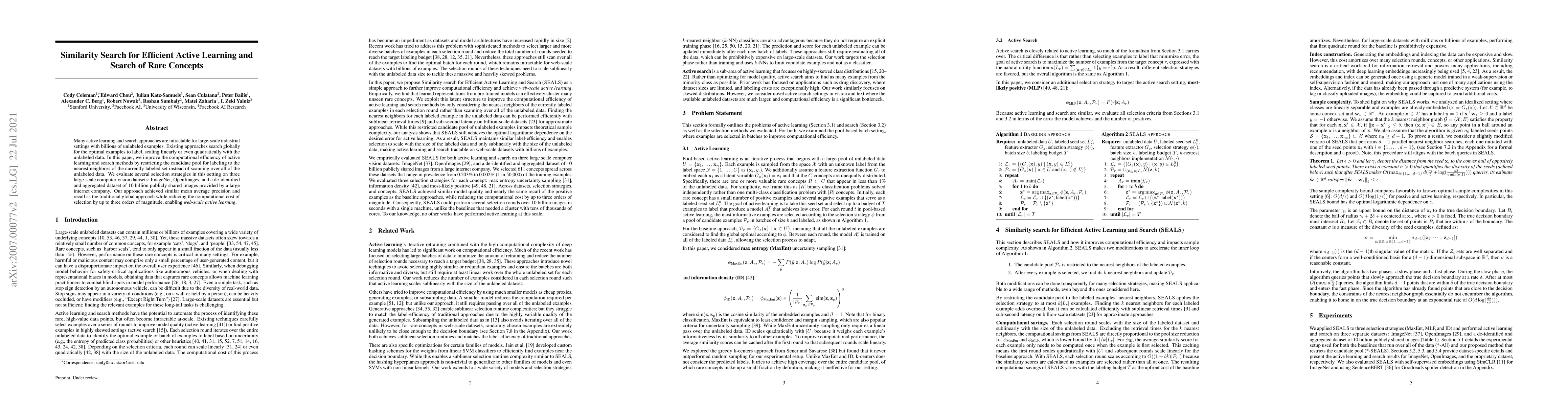 Many active learning and search approaches are intractable for large-scale industrial settings with billions of unlabeled examples. Existing approaches search globally for the optimal examples to label, scaling linearly or even quadratically with the unlabeled data. In this paper, we improve the computational efficiency of active learning and search methods by restricting the candidate pool for labeling to the nearest neighbors of the currently labeled set instead of scanning over all of the unlabeled data. We evaluate several selection strategies in this setting on three large-scale computer vision datasets: ImageNet, OpenImages, and a de-identified and aggregated dataset of 10 billion images provided by a large internet company. Our approach achieved similar mean average precision and recall as the traditional global approach while reducing the computational cost of selection by up to three orders of magnitude, thus enabling web-scale active learning.