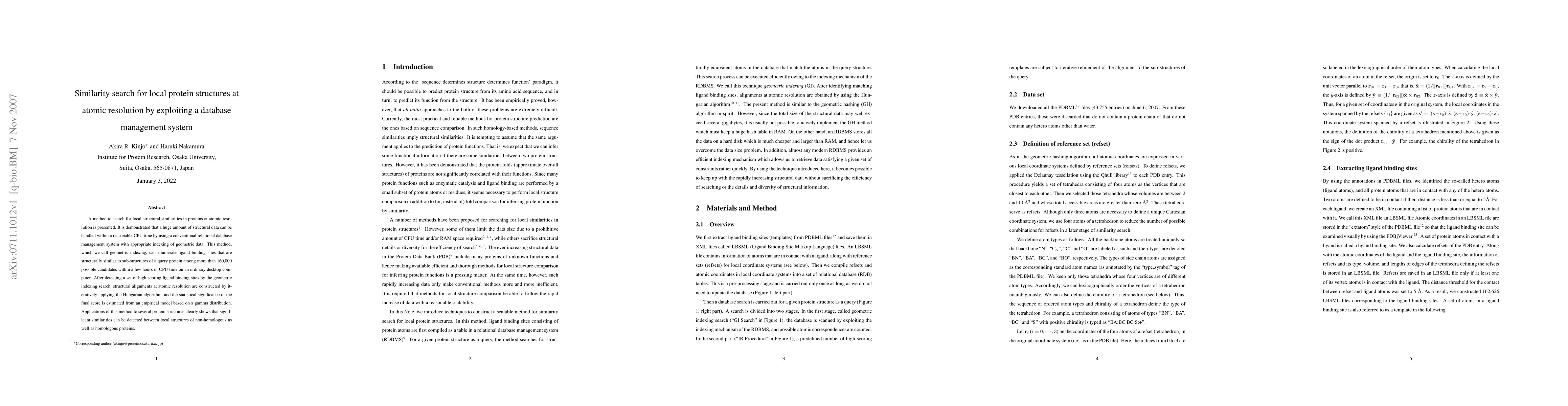Researchers developed a method to search for local protein structures at atomic resolution using a database management system, allowing for efficient identification of similar structures within hours on an ordinary desktop computer. The method can detect significant similarities between non-homologous proteins.