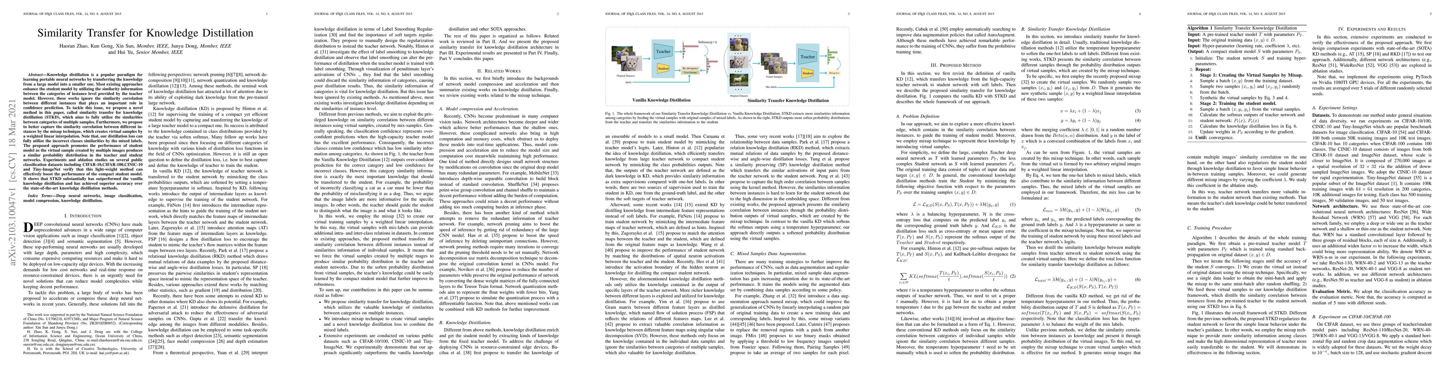 The paper proposes a novel method called Similarity Transfer for Knowledge Distillation (STKD) to enhance student neural networks by leveraging similarities between categories of multiple samples and instance correlations via mixup. Experiments show that STKD significantly outperforms traditional knowledge distillation and state-of-the-art methods on various classification datasets.